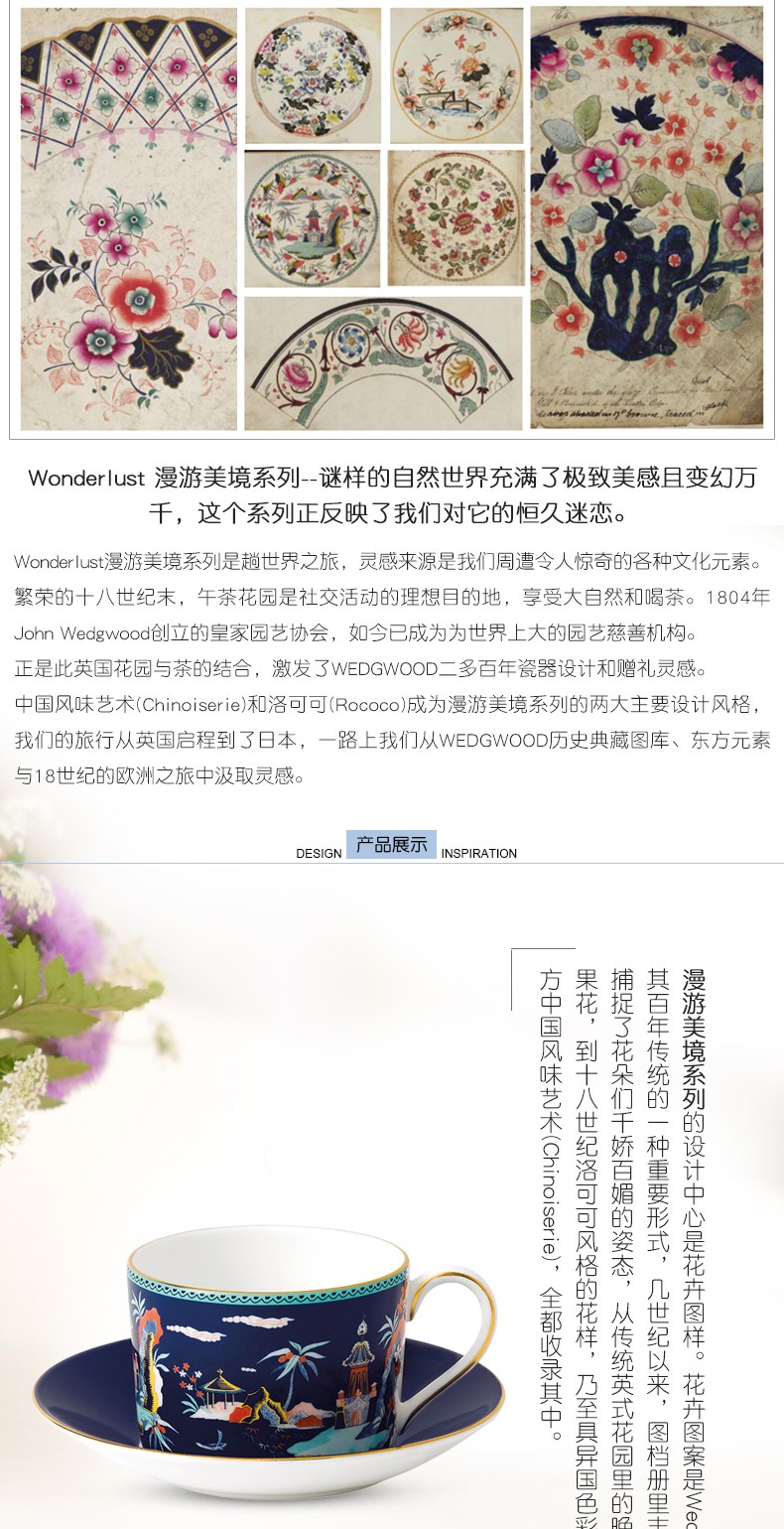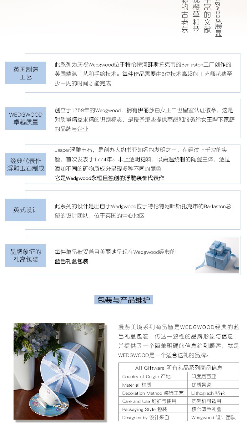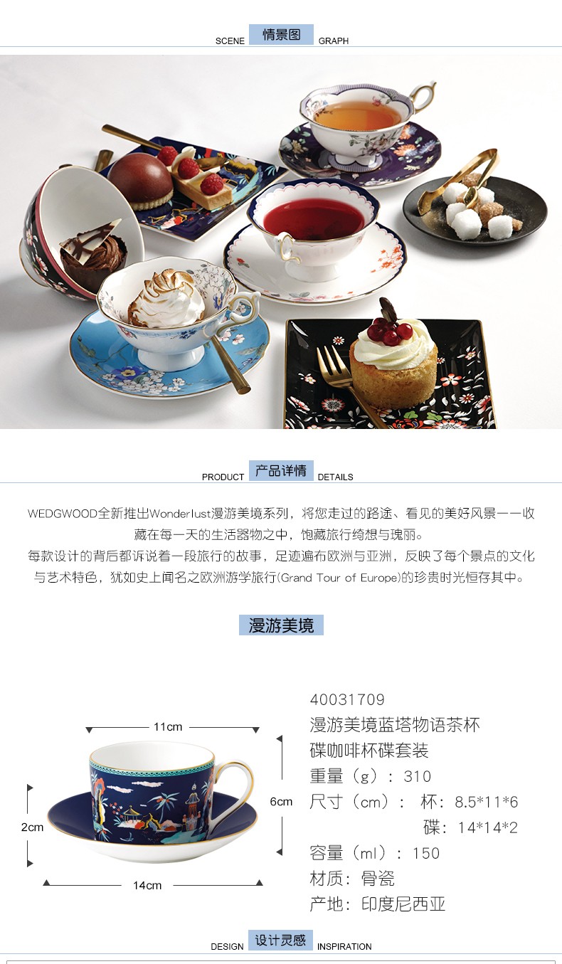 【6F】WEDGWOOD威基伍德玮漫游美境蓝塔物语骨瓷杯碟2件组礼盒套装