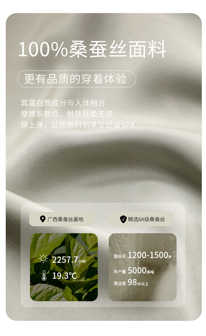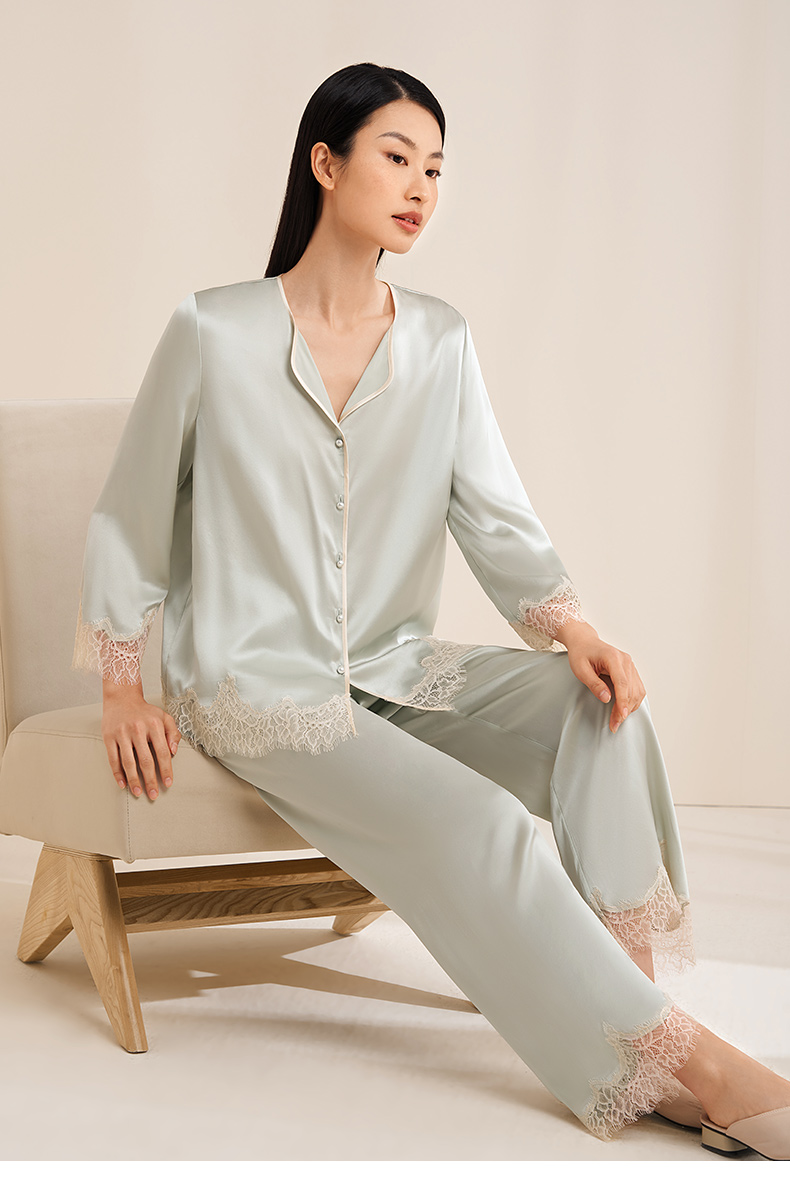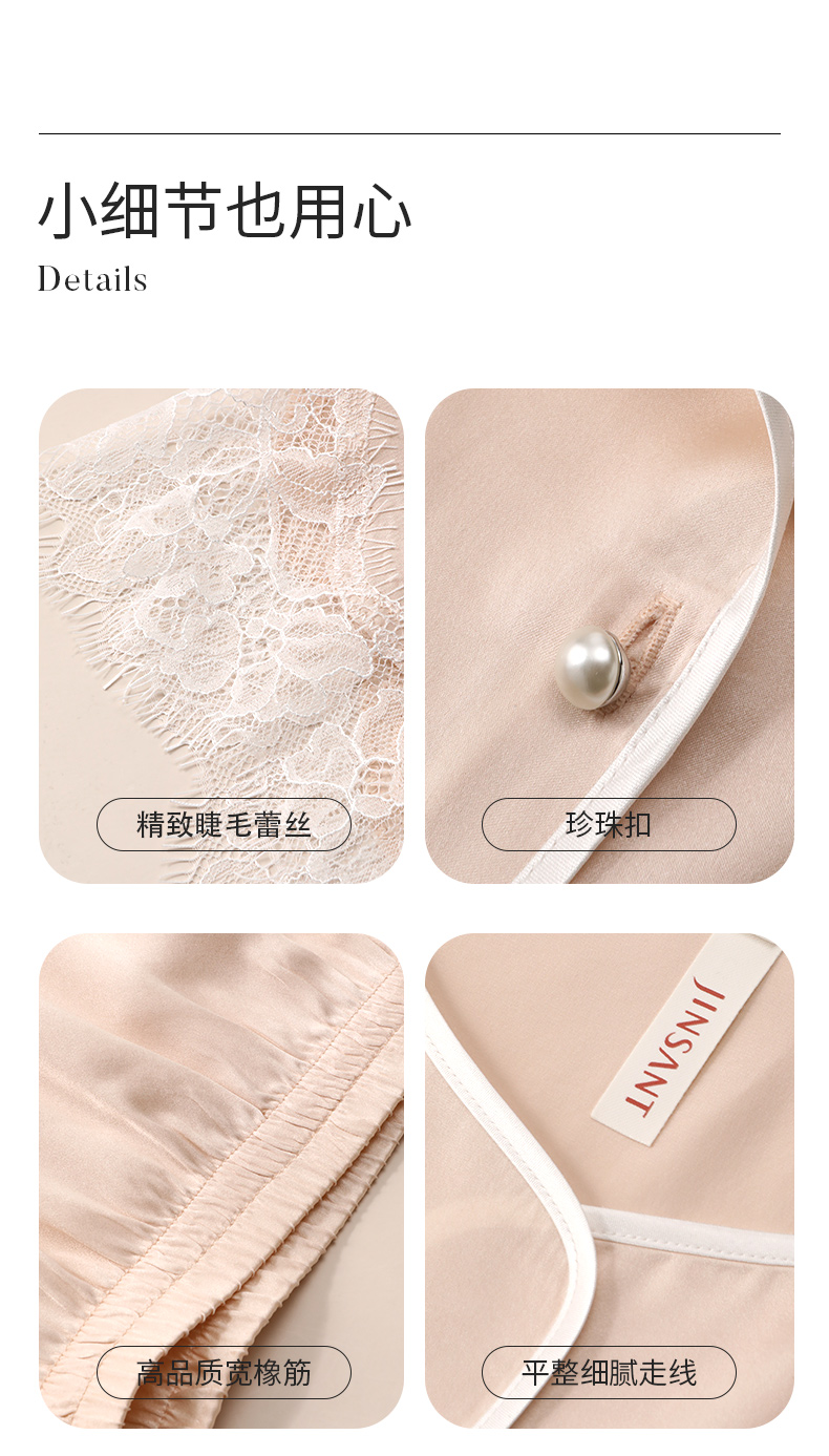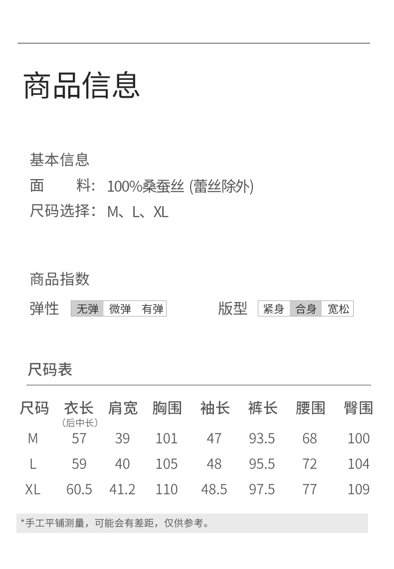 金三塔真丝睡衣女100%桑蚕丝复古蕾丝拼接宽松舒适长袖家居服套装(限价款) YSFEA207