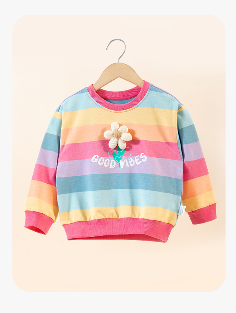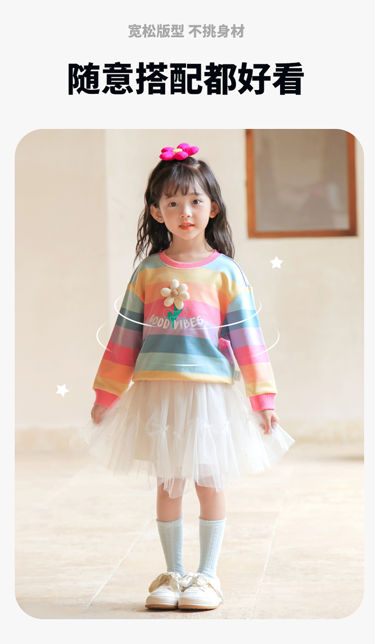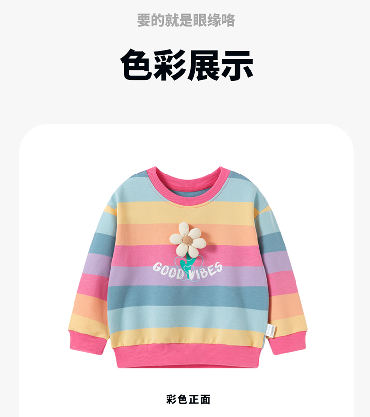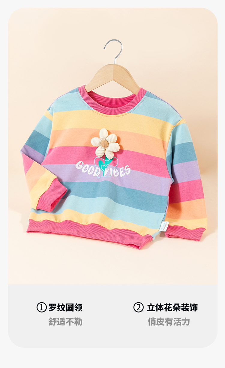 【彩虹条纹】贝贝怡女童卫衣秋季新款套头时尚圆领上衣233S3250