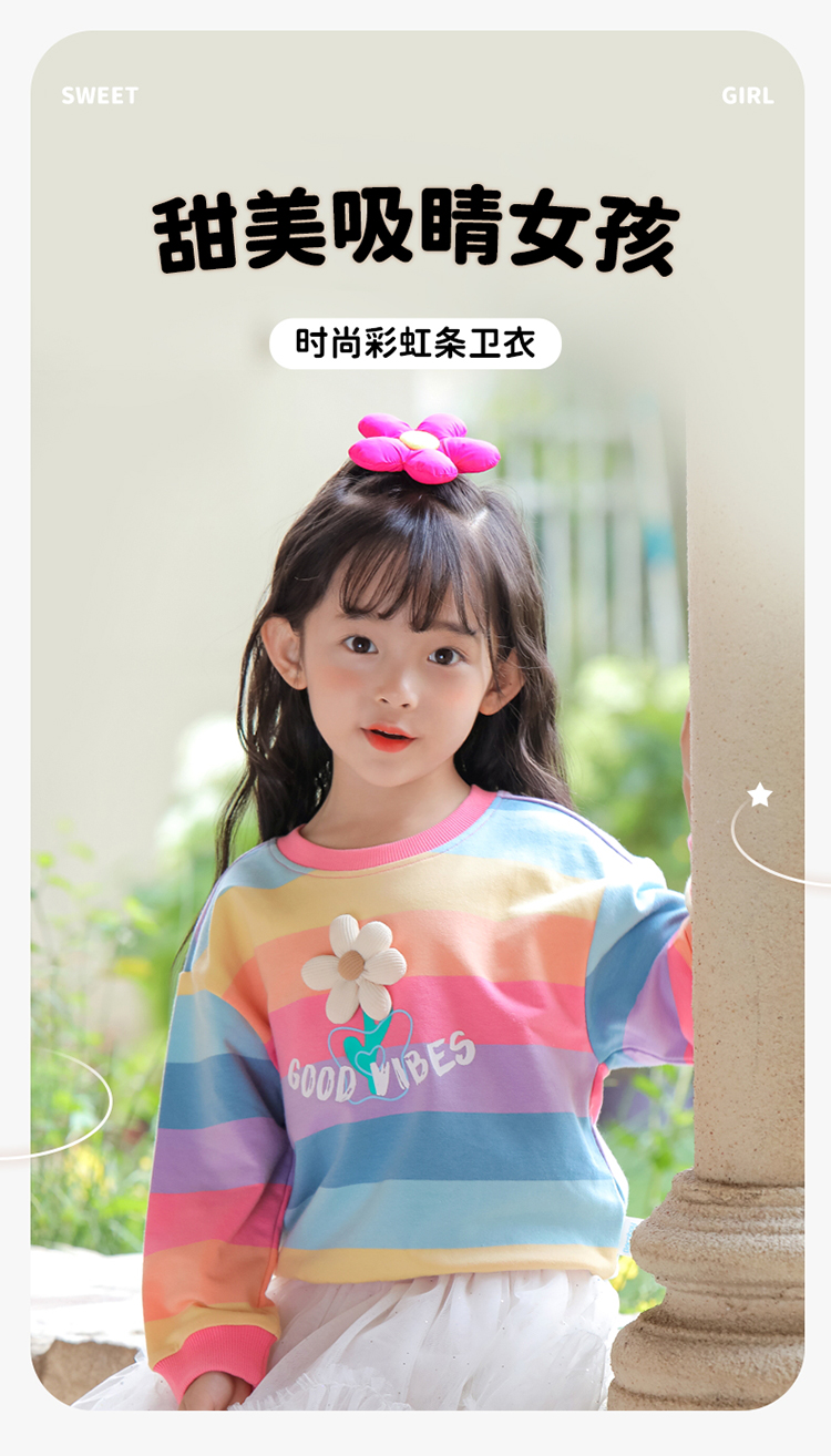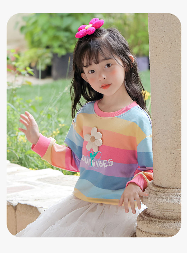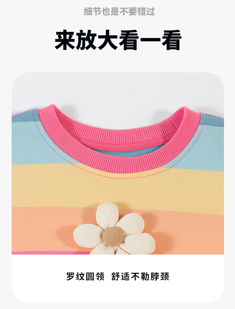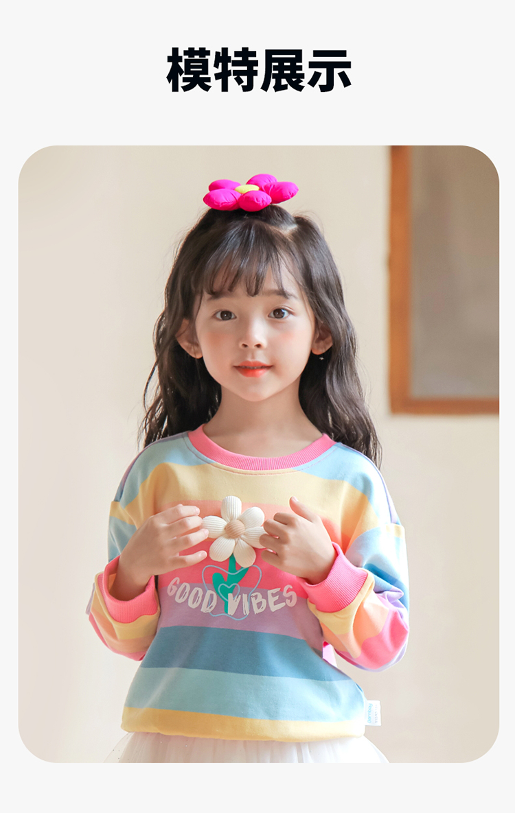 【彩虹条纹】贝贝怡女童卫衣秋季新款套头时尚圆领上衣233S3250