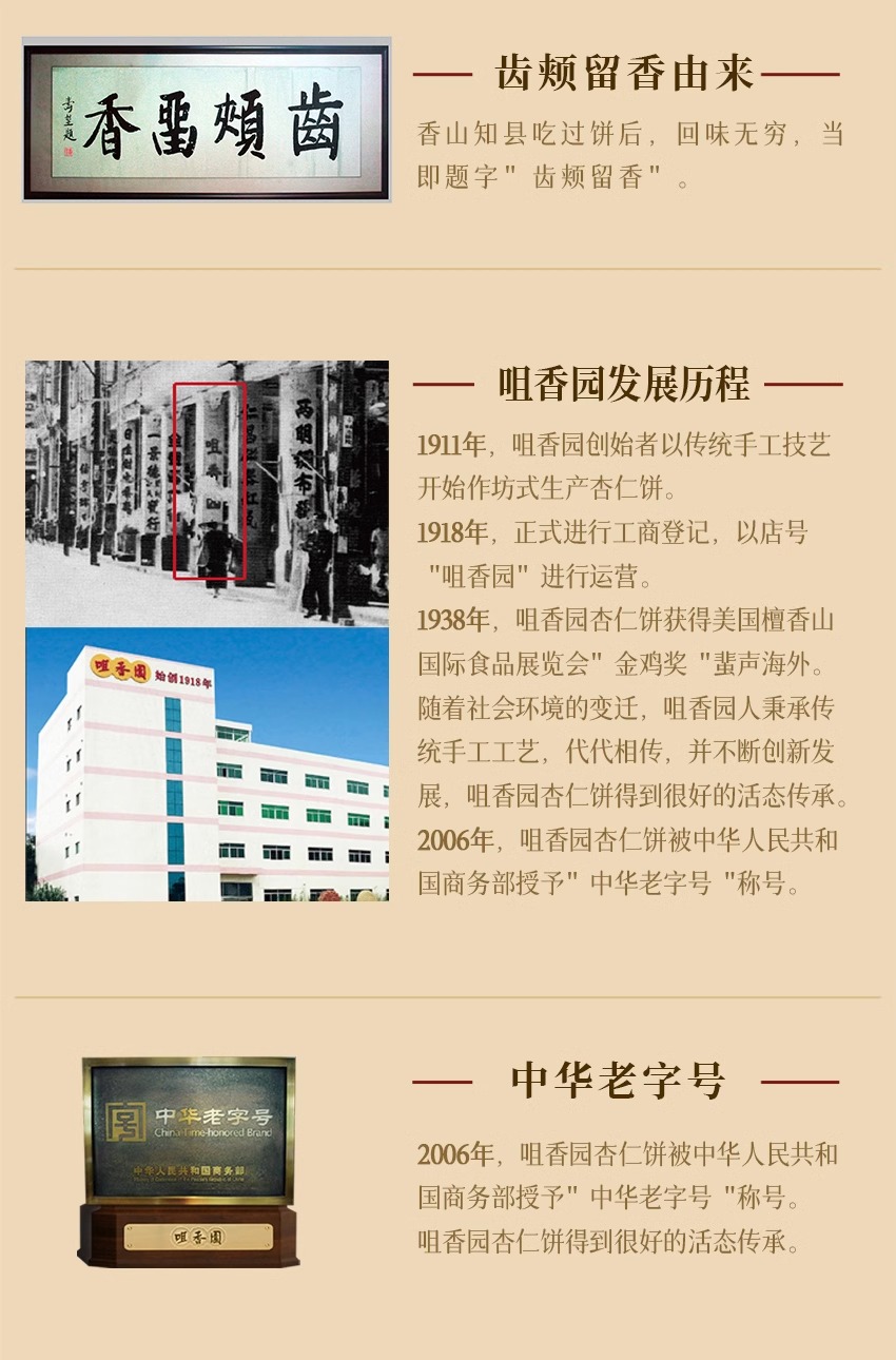 - 百年品牌,中华老字号;杏仁饼创始者~
