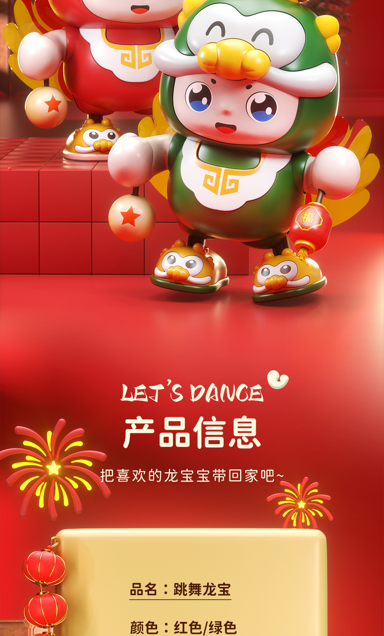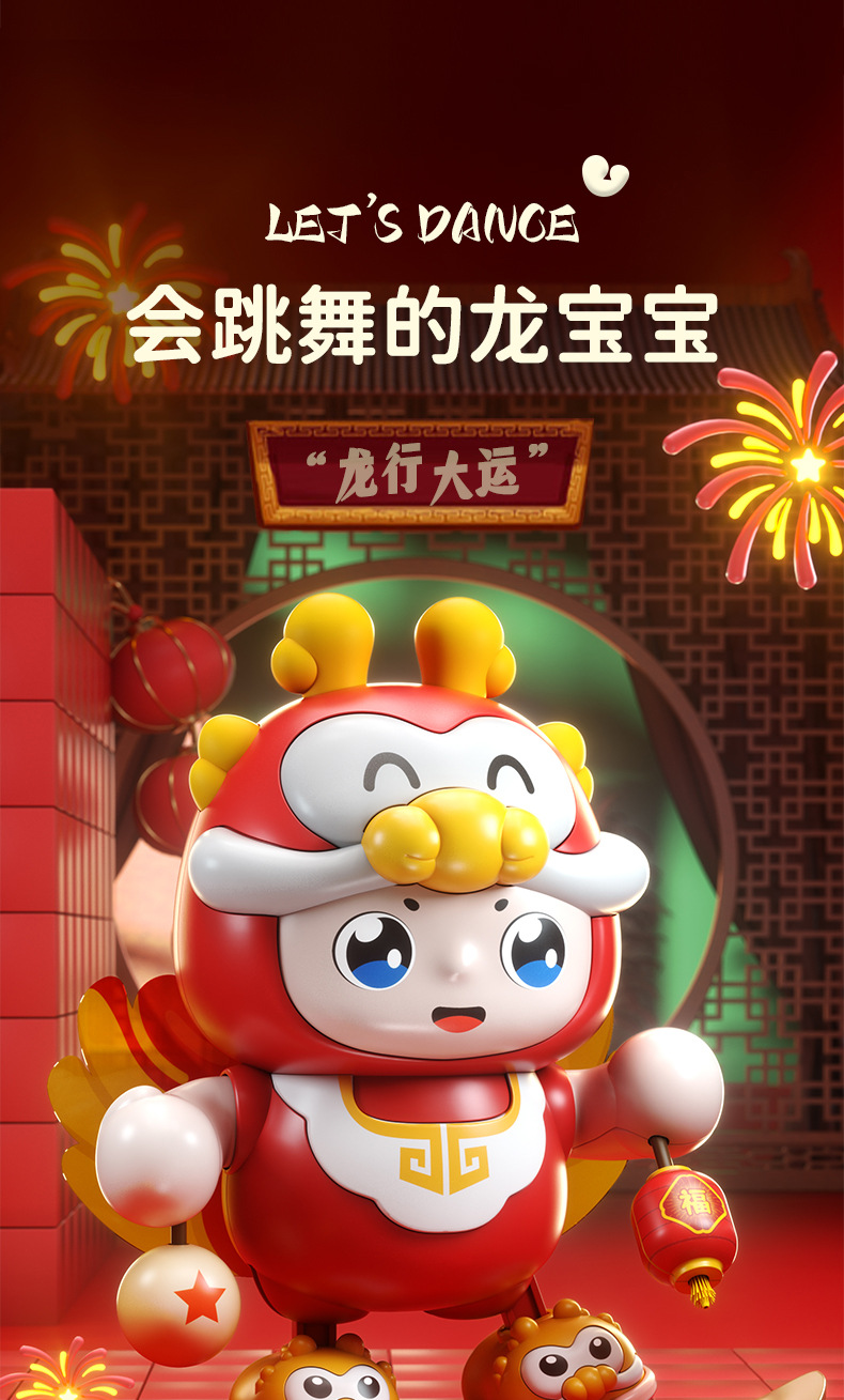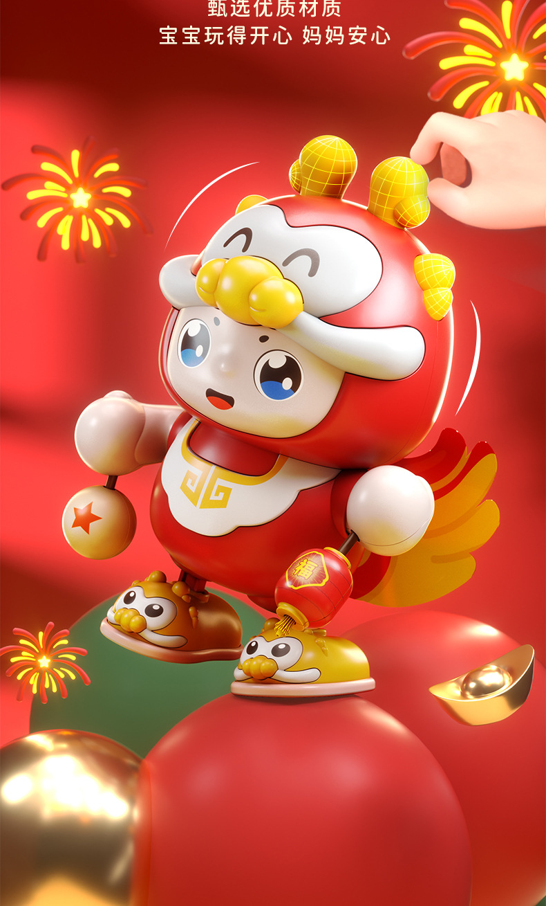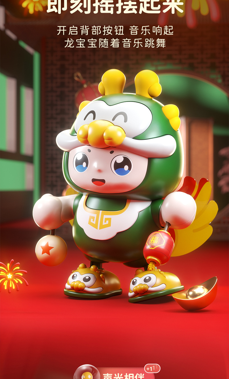 【声光相伴 逗引学爬】会唱歌跳舞机器人福龙宝儿童抬头训练音乐灯光跳舞摇摆玩具龙年