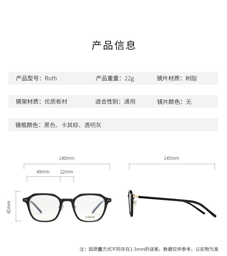 𝐂𝐀𝐑𝐈𝐍 RUTH 板材框架眼镜