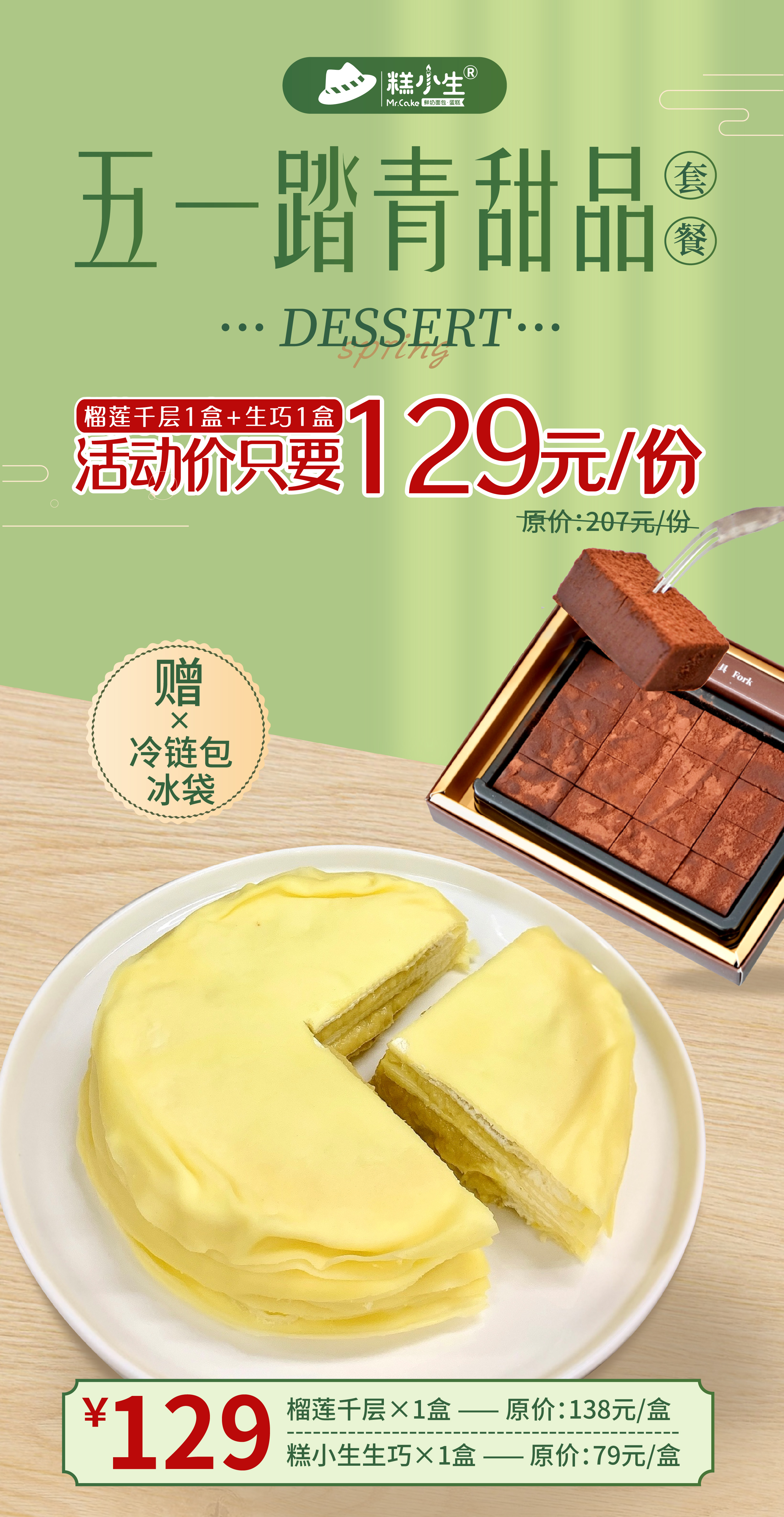 立减78元【榴莲千层+生巧】假期出游必备,带上甜品去踏青 - 陪你开心过五一