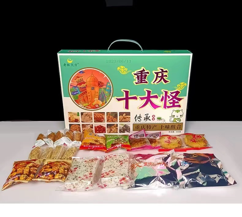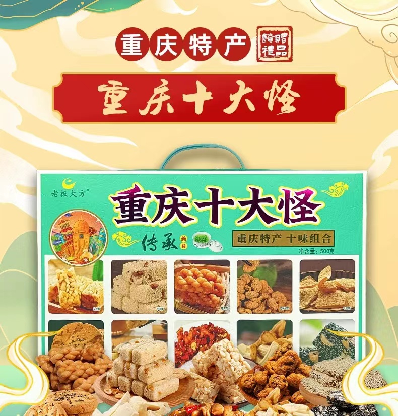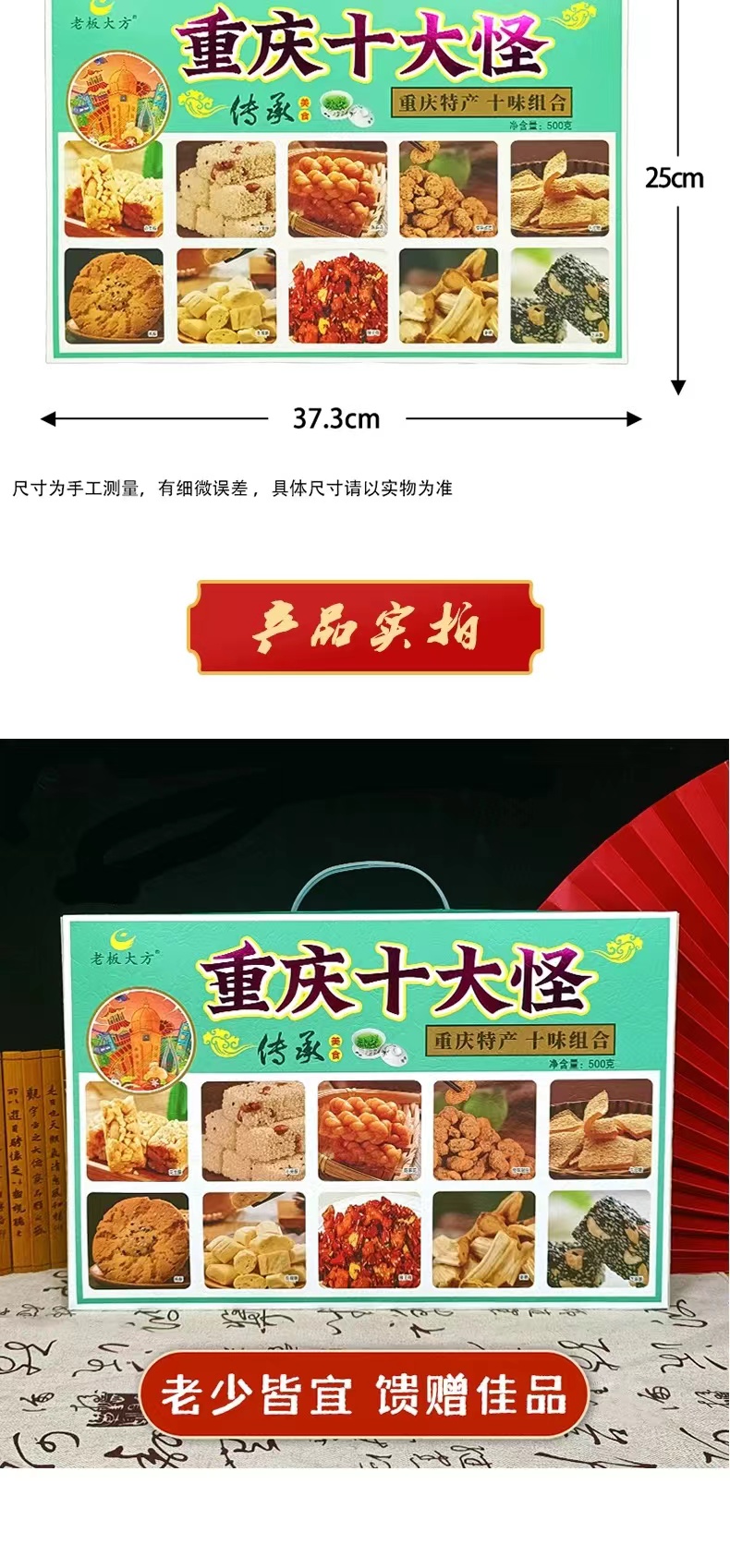 重庆特产 礼盒老板大方 十大怪 500g礼盒装 磁器口麻花 桃酥芝麻 送礼