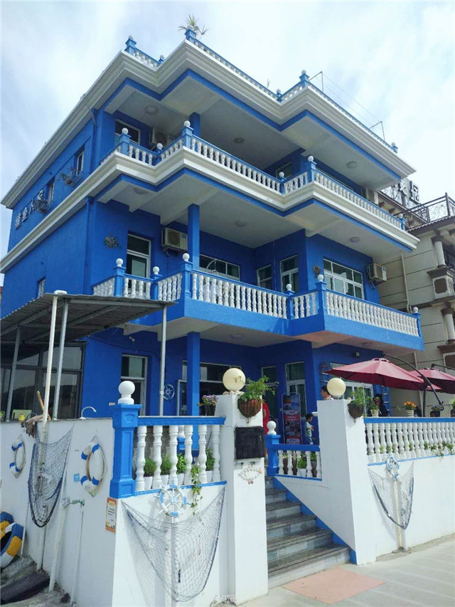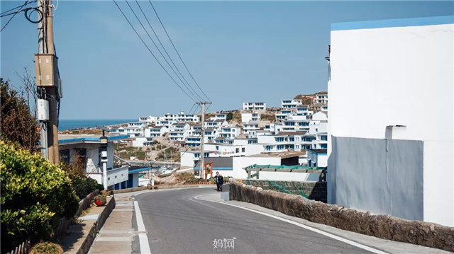 蓝白交错的房子是花鸟岛极富特色的浪漫建筑