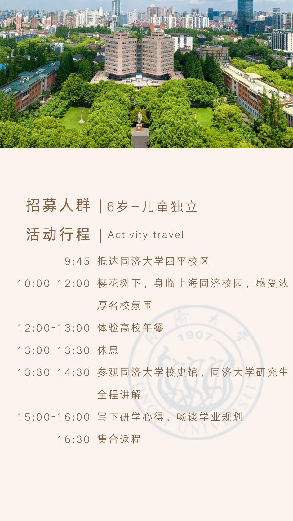 备1 孩子志独立营 | 上海同济大学一日研学【昆山发车】拓宽视野,感受名校氛围,激发学习热情,树立名校目标,勇攀学业高峰!