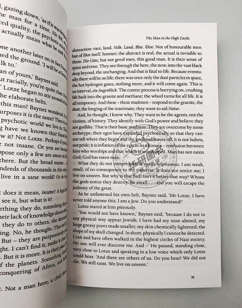 The Man in the High Castle《高堡奇人》是菲利普•迪克的代表作之一,也是架空历史杰出的经典,曾获得“雨果奖长篇小说”。小说以《易经》牵引情节,讲述了一种反转过来的“历史”——同盟国在二战中战败,美国被德国和日本分割霸占,集权政治与东方哲学相互碰撞,探讨了正义与非正义,文化自卑与身份认同,以及法西斯独裁和种族歧视给人类社会造成的后果。