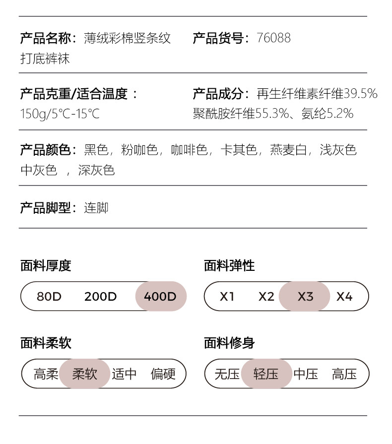 【清仓买1送1】Laseta兰妲薄绒彩棉竖条纹连裤袜(4-1016)