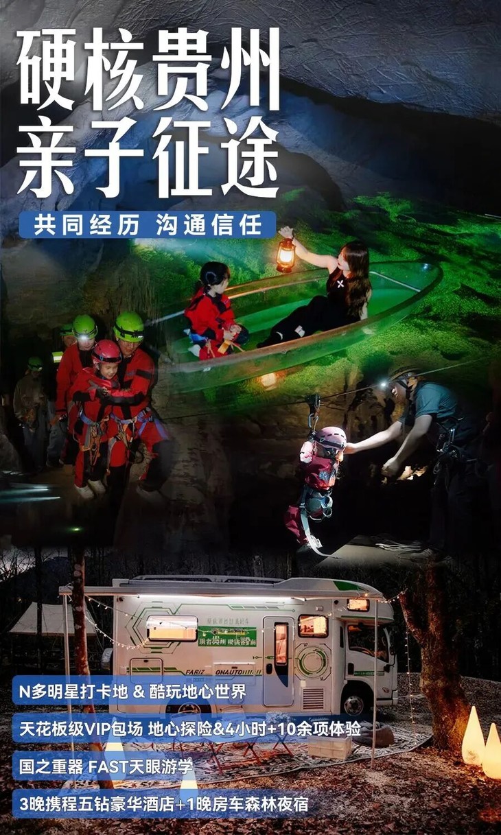 【寒假亲子】硬核贵州,VIP包场探索“地心迪士尼”,攀爬悬崖咖啡,房车森林露营,FAST天眼探秘!小七孔\古寨|5~65岁亲子