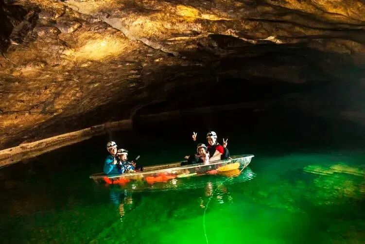 途中我们还贴心准备【洞穴茶歇】,可一起在地心深处休闲喝茶,在这里体验【蓝水潭玻璃船打卡】,让地心探险更有趣更丰富!