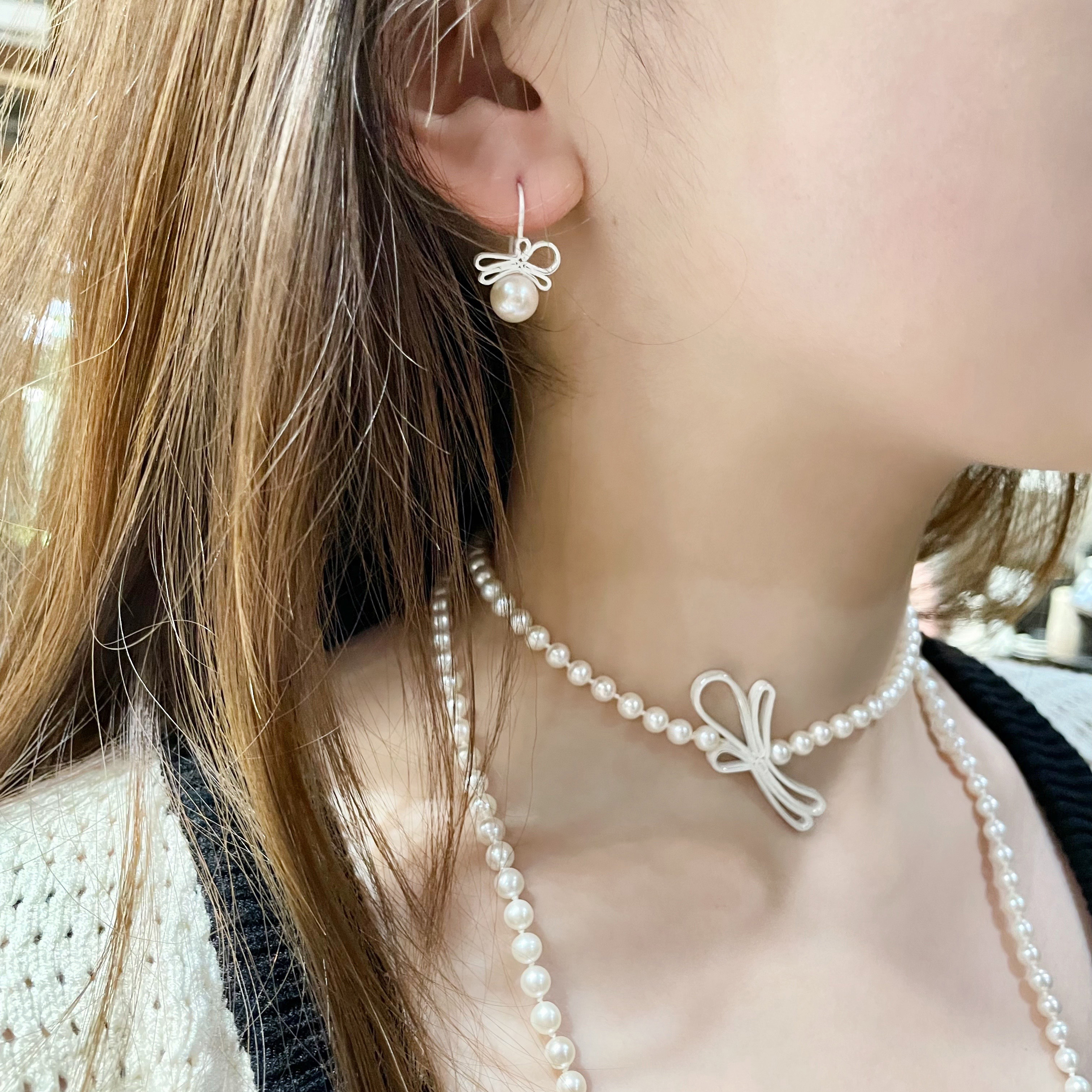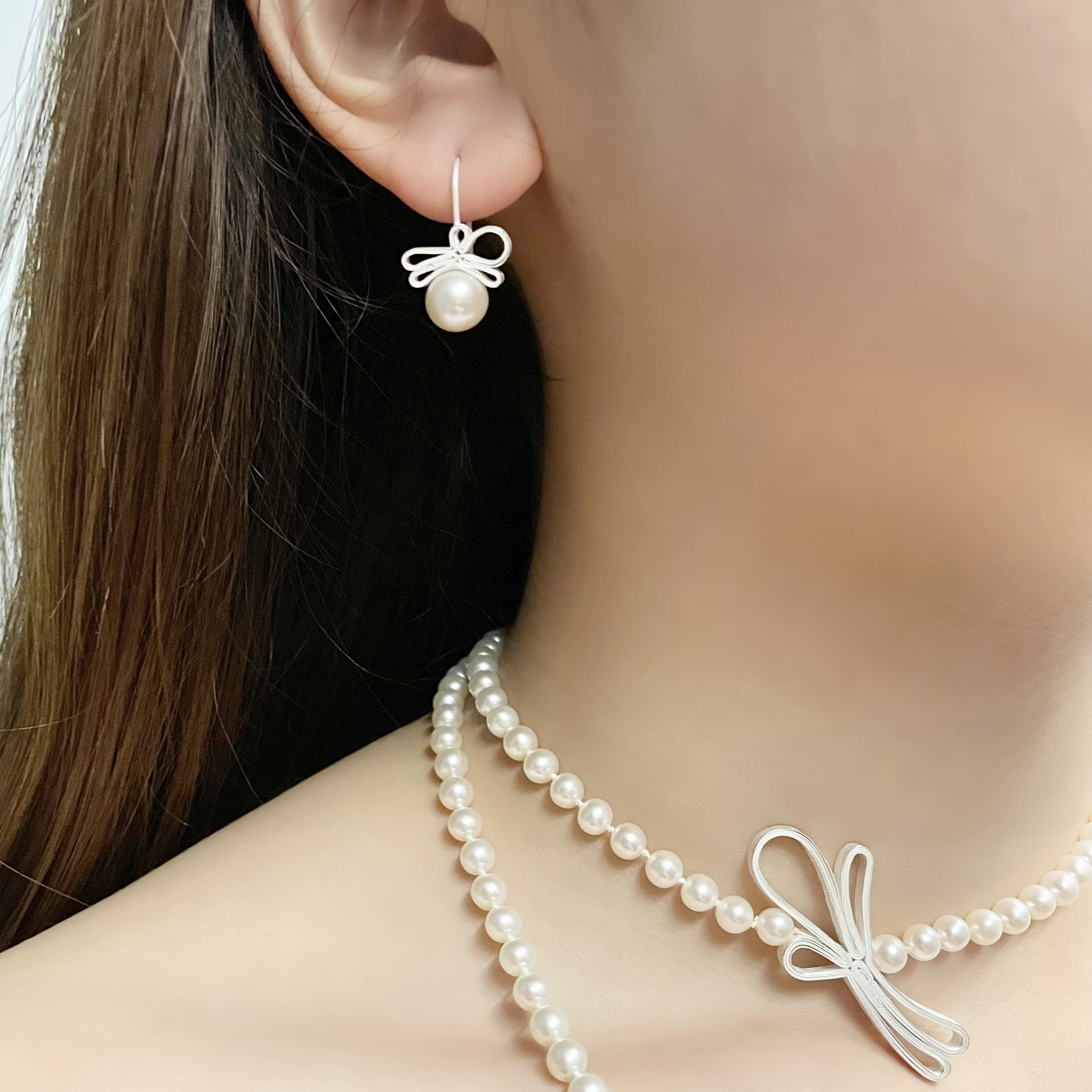 北京仓|Petra Dömling-Allure-丝带 珍珠 耳钉[德国设计师]