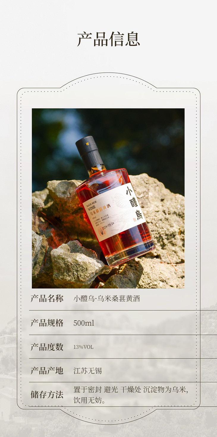[屁侠推荐]小醴乌 乌米桑葚黄酒 500ml/瓶礼盒装 13度