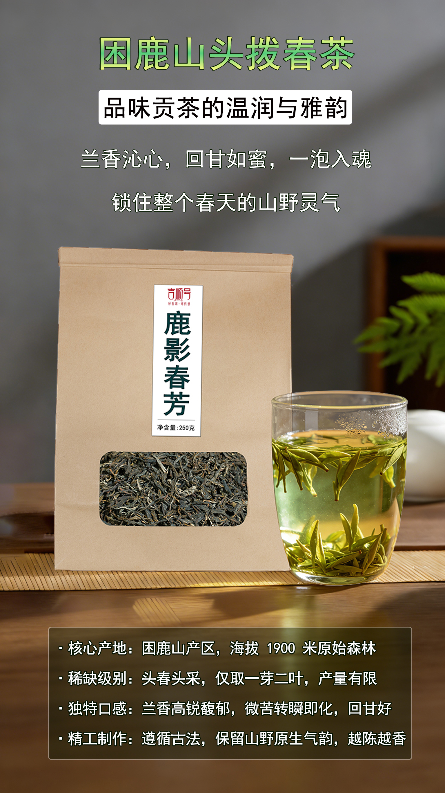 【新茶尝鲜】今日下单送2包试喝装 2026年新茶困鹿山春茶鹿影春芳250克/袋