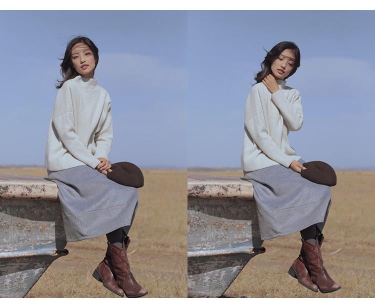 绽放C794朵/歌台/2018冬季新款灰紫色A字毛呢半身裙加厚复古半裙