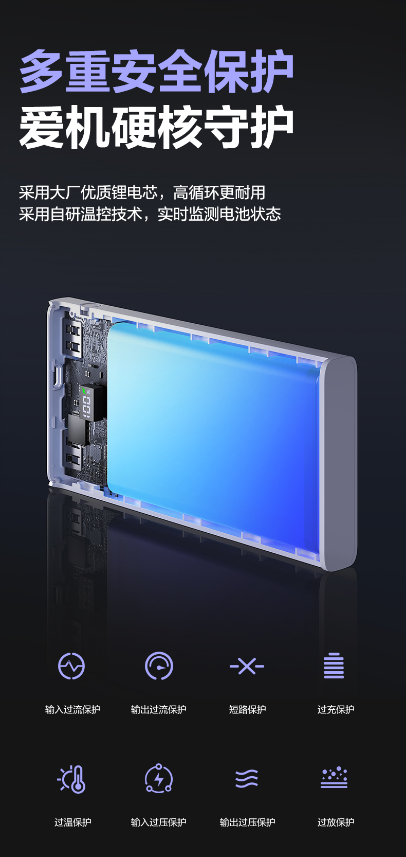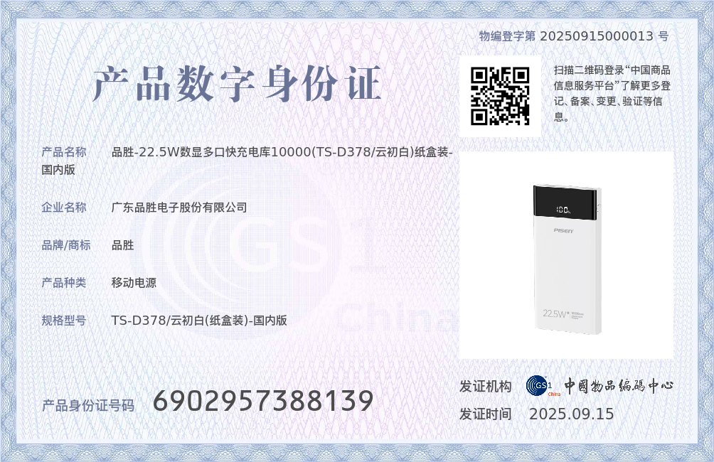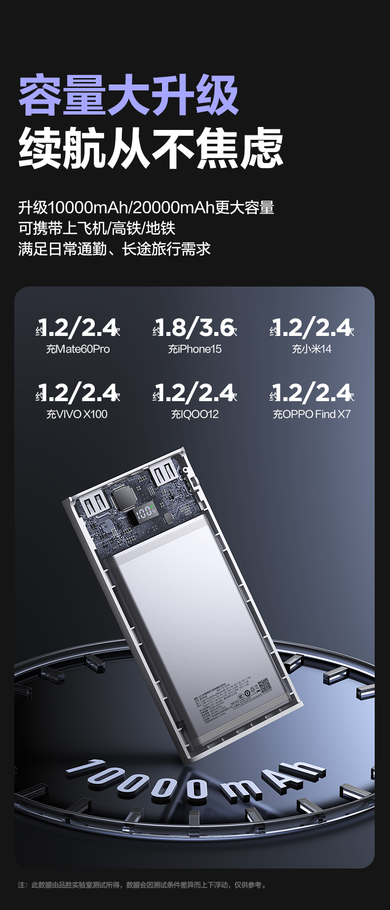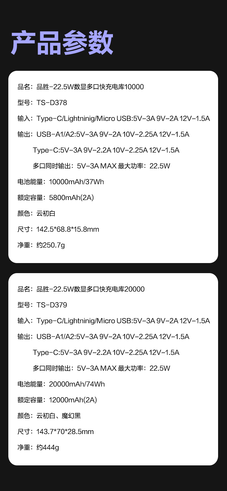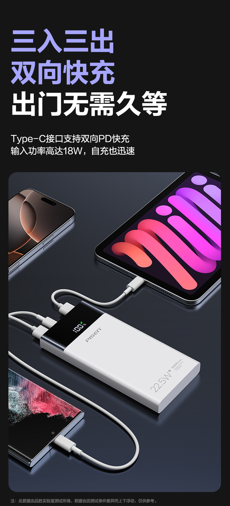 品胜 22.5W数显多口快充电库10000/20000毫安 LED显示屏支持iPhone 8-16充电移动电源