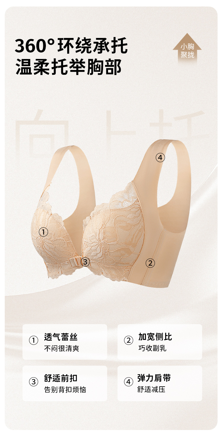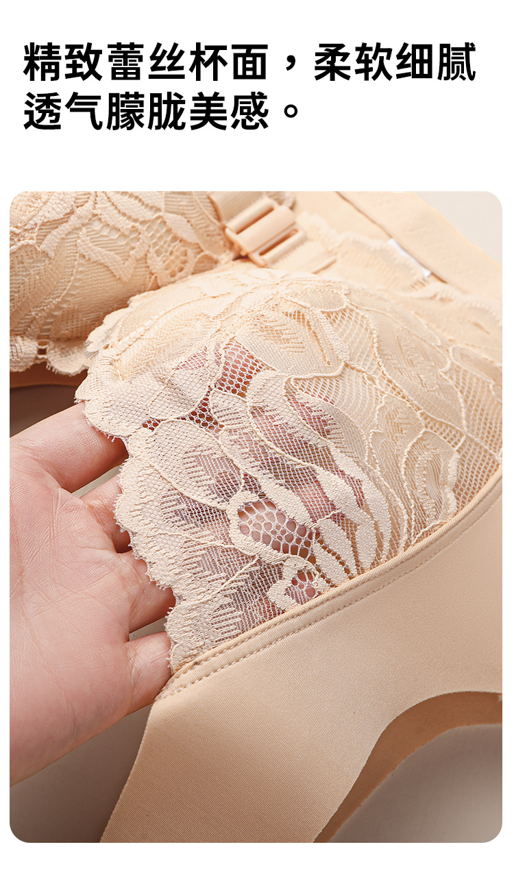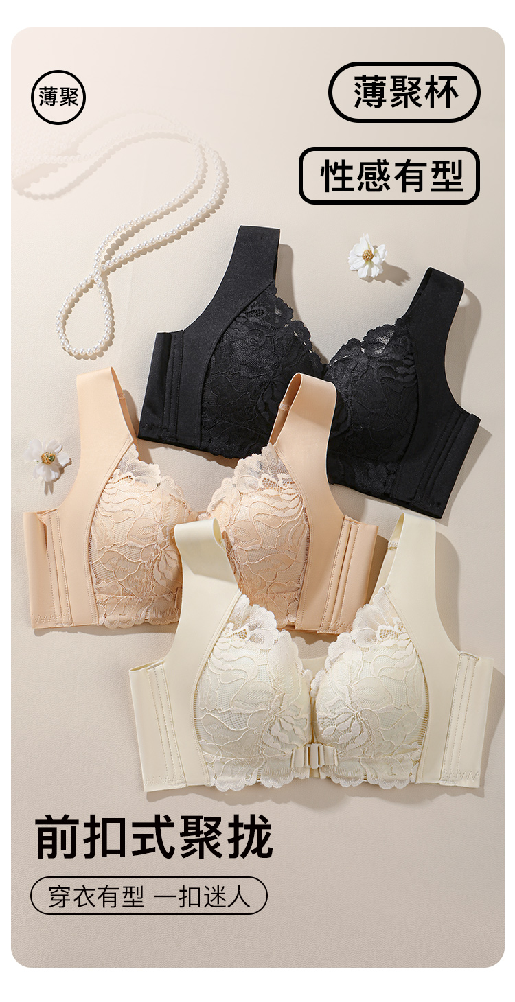 A2--【B-C杯】【前扣聚拢显大】润微前扣调整型内衣女夏季薄款聚拢防下垂无钢圈文胸罩 花开栀夏【小胸-蕾丝】