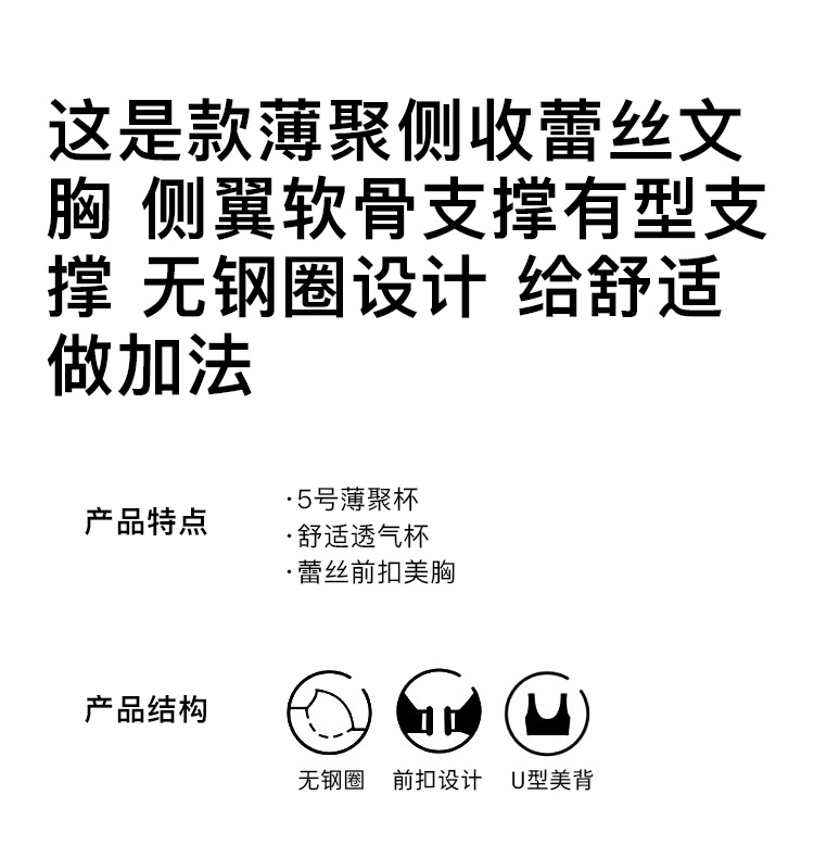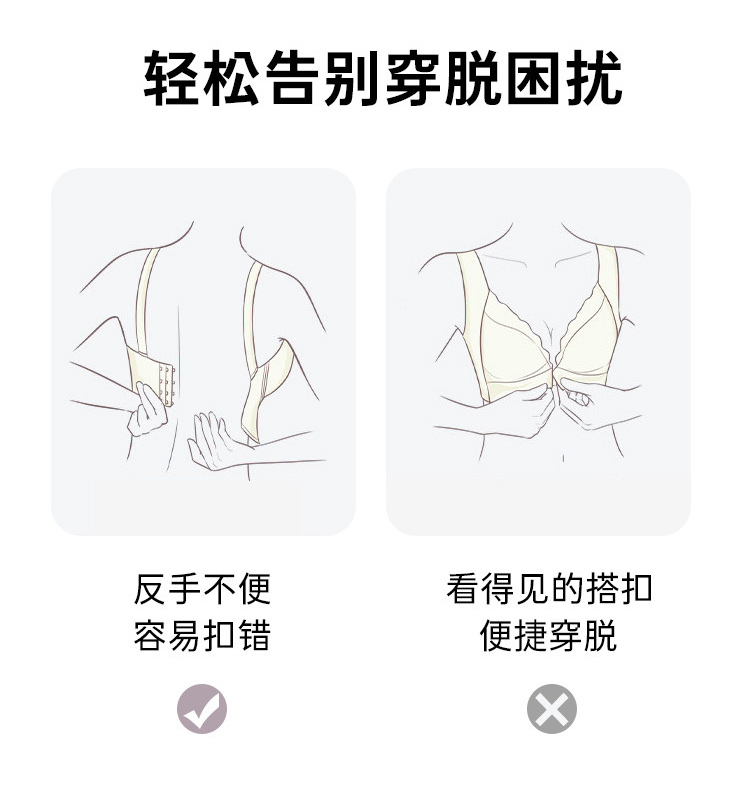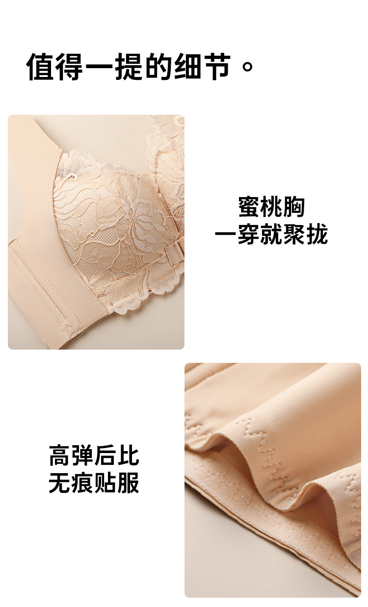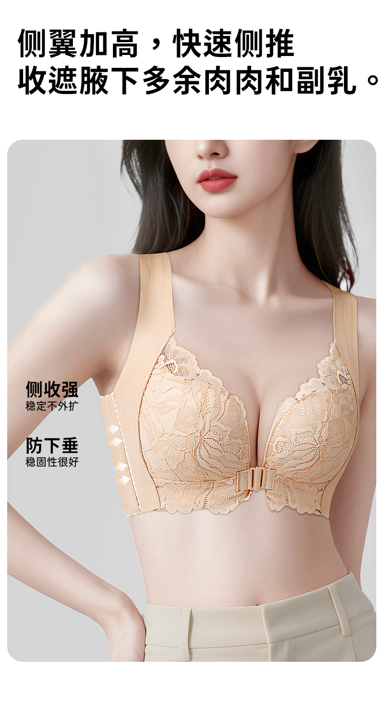 A2--【B-C杯】【前扣聚拢显大】润微前扣调整型内衣女夏季薄款聚拢防下垂无钢圈文胸罩 花开栀夏【小胸-蕾丝】