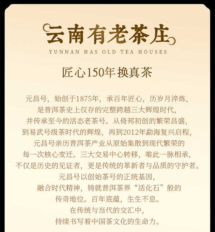 - 百年字号,传统技法。恪守匠心,传承经典老字号的味道。勐海县福元昌茶厂茶生活馆,为你呈上健康而精致的茶生活,期待你成为我们的会员家人!