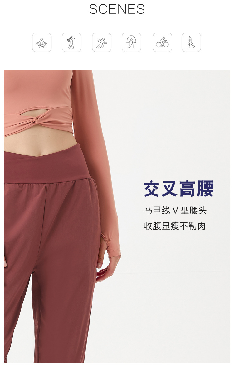 跃牌【明丽逸动】系列 新品速干健身运动裤女长裤高腰瑜伽裤宽松舞蹈欧美哈伦裤交叉AL8035