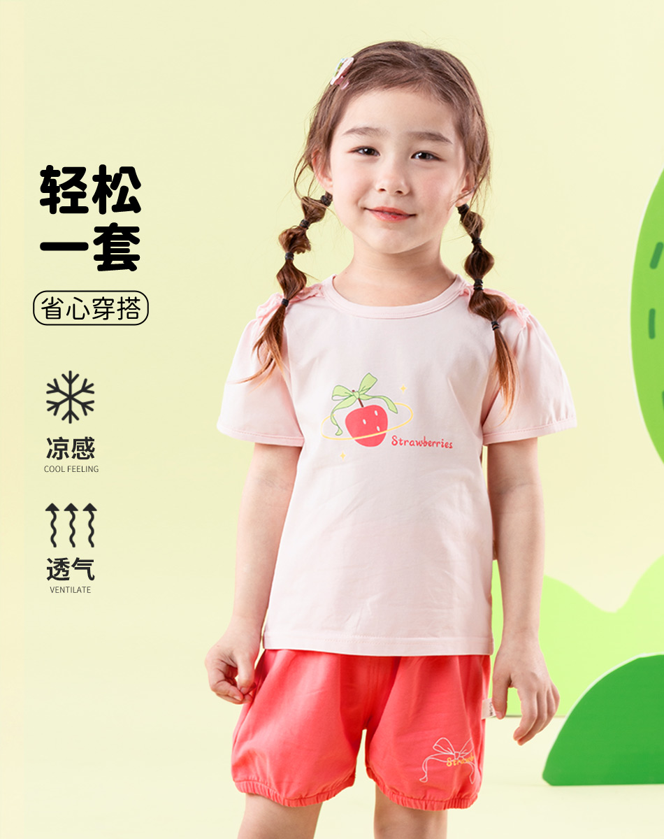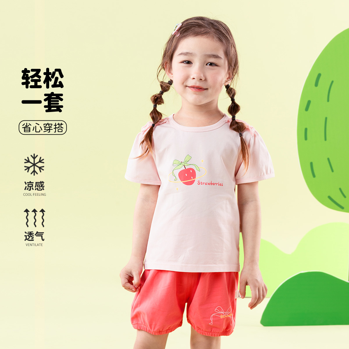 贝贝怡【凉感短袖套装】夏季新款女童冰感T恤+宽松透气短裤运动休闲套装ZB2ET004