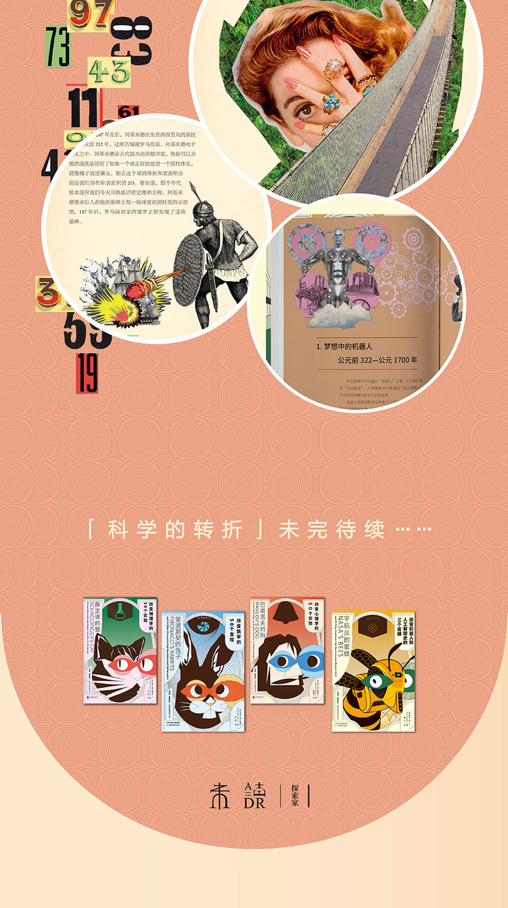 ★后现代风格插画,非传统科普风,赏心悦目,让人过目难忘。全彩四色印刷,创意拼贴风格,一套既潮又酷的人类科学史!