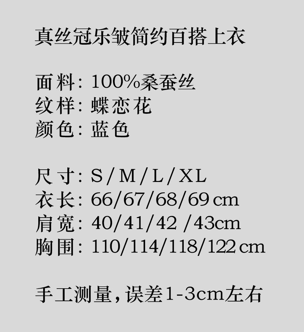 盛唐婧 |真丝冠乐皱简约百搭上衣-蓝色
