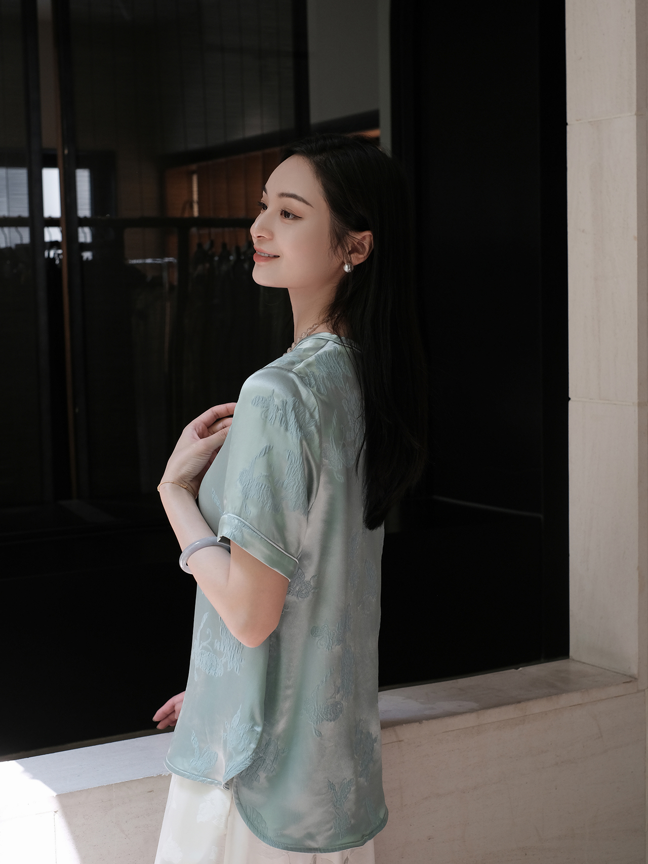 盛唐婧 |金鱼提花一字扣外套-淡绿
