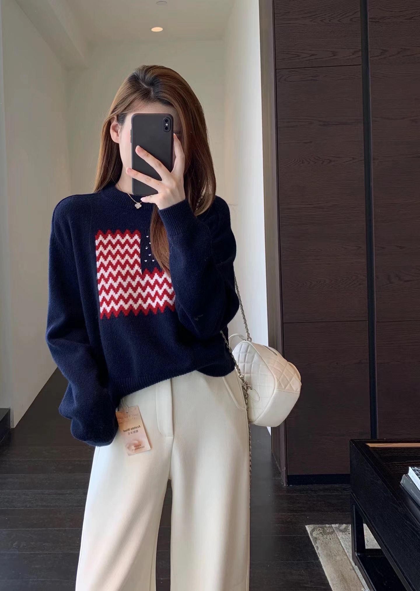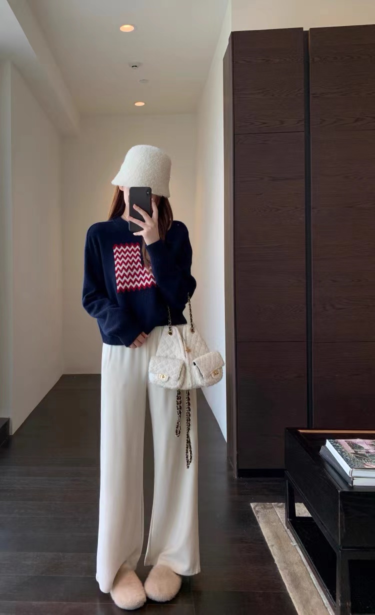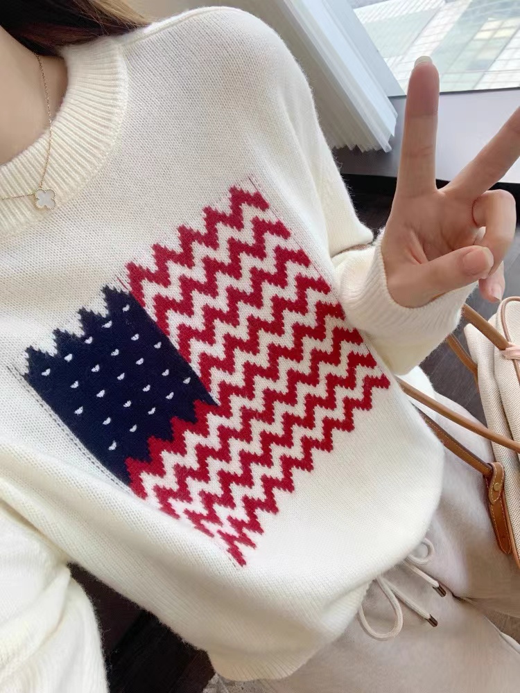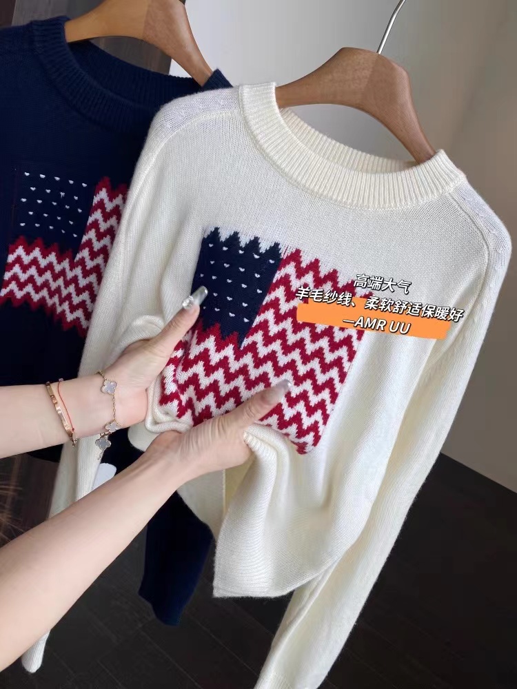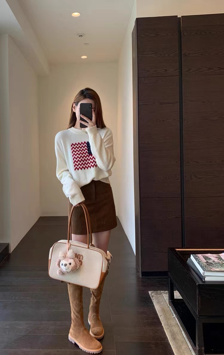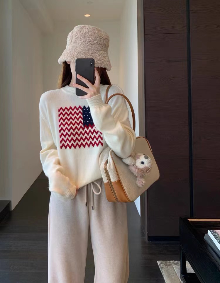 美式氛围感拉满了!它是那种宽松的落肩版型wan全不挑身材精典的小圆领百搭又耐看肩宽的姐妹也不用担心显壮落肩设计能很好地弱化肩线 简简单单就能穿出慵懒随性的感觉衣长也很合适刚好能遮住屁股 搭配高腰裤或者短裙分分钟打造三七分身材 羊毛混纺纱线亲肤舒适度也很篙而且换季的时候容易温差大这种面料穿起来就很舒服 有保暖度 吸湿性也好 波浪纹爱心图案的编织CHAO级精 致 不是那种廉价的印花是实打实的针织纹理 提花+绣花的质感fei常饱满立体 整件的克重不低滴 质感也是直接拉满做了米白和藏青两个颜色都是日常比较好搭配的换季的时候可以在下面搭配短裤或者短裙就很有留学生穿搭的感觉再冷一点搭配起来当内搭也是菲常耐看!这种复古又jing典的元素和版型穿个几年都不会过时!实用性直接拉满