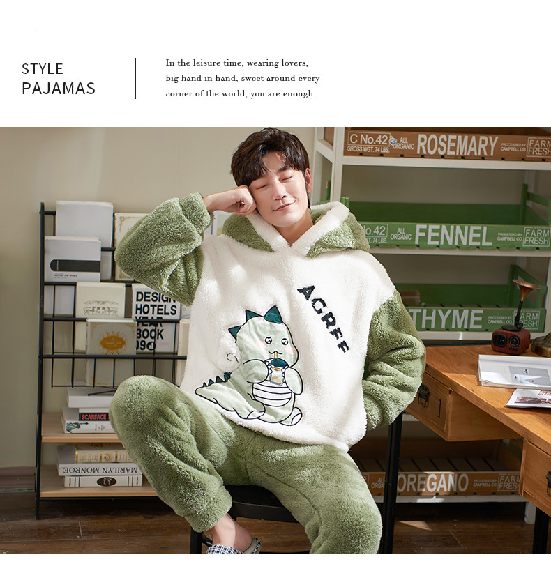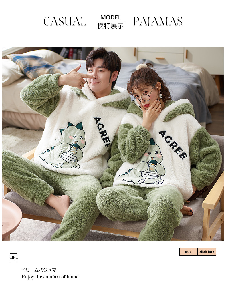 【保暖柔软舒适❗️情侣家居服】情侣睡衣女冬天加厚加绒珊瑚绒可爱恐蛇秋冬季男士法兰绒睡衣父亲节礼物新年礼盒年货礼盒