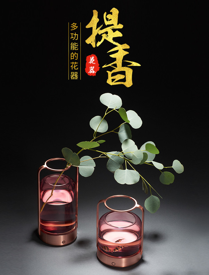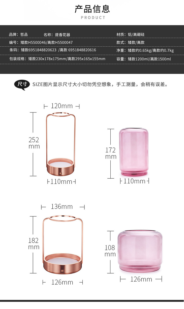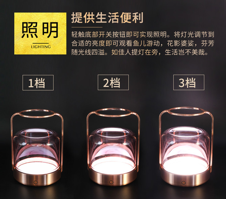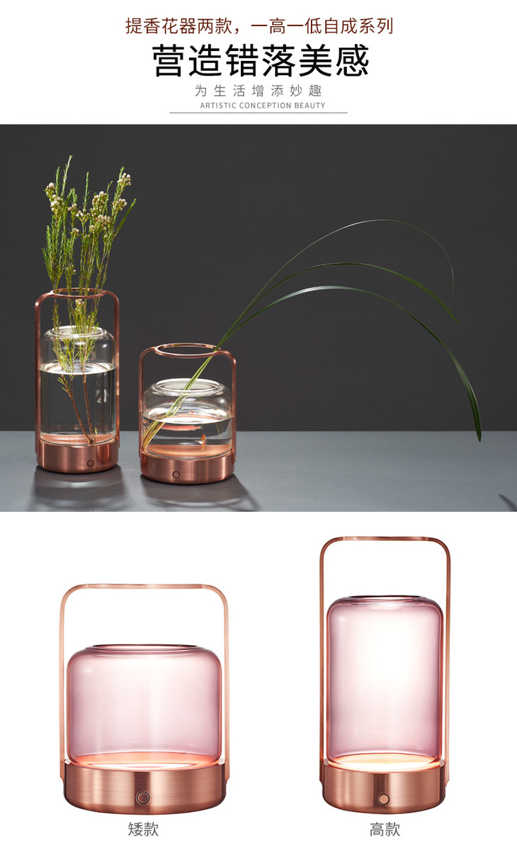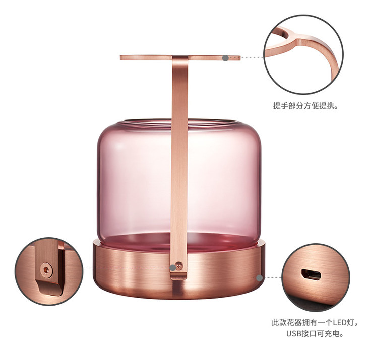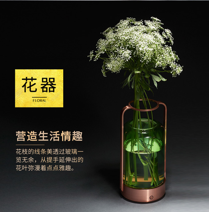 哲品家居 ZL提香花器系列现代简约创意玻璃插花器带LED灯可养鱼