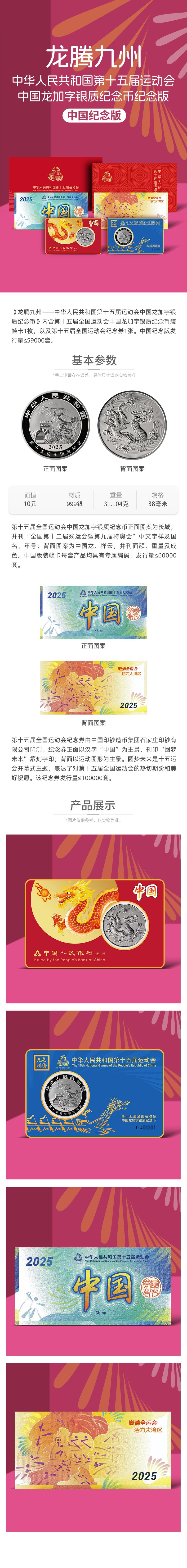 【一币一券】中国版 2025年中国龙加字银币+第十五届运动会纪念券