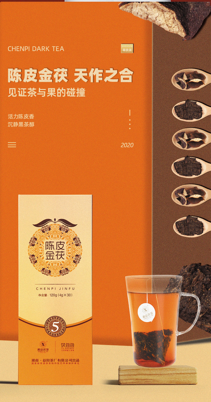 黑茶 湘益 陈皮金茯 2020年 120g 单条装