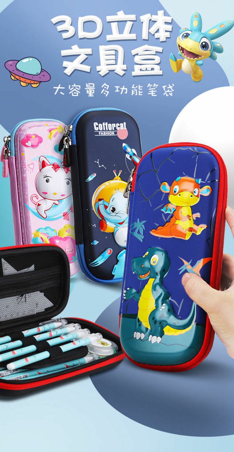 小学生笔袋三层多功能文具盒男童铅笔盒女童可爱卡通幼儿园铅笔袋