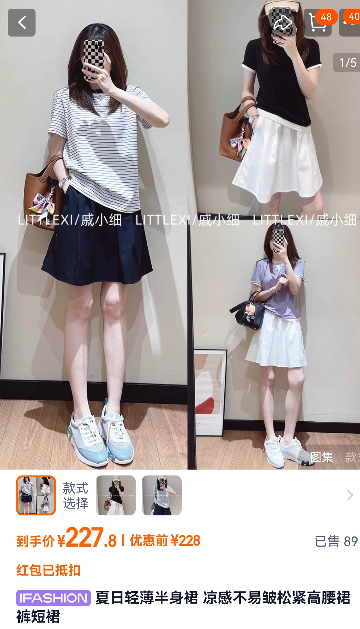 短裙配防走光短裤,裤裆加深,宽松 舒适 不走光!
