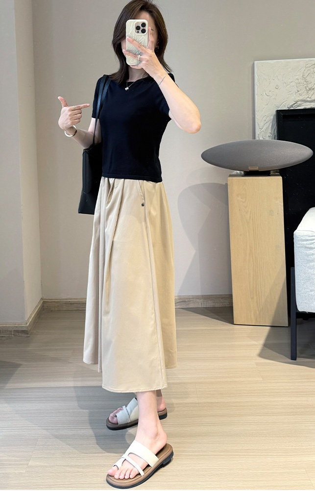 S松紧腰, 短裙长48cm,长裙长79cm