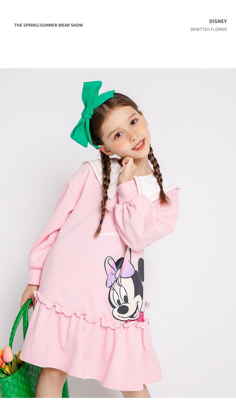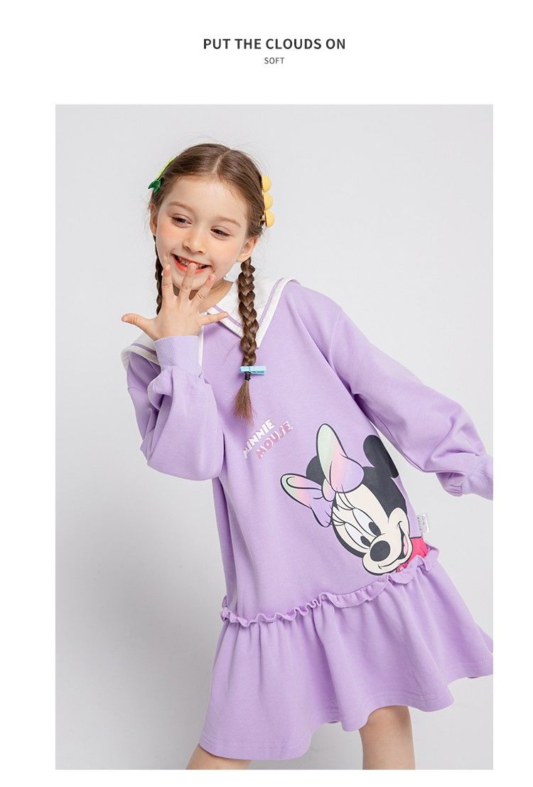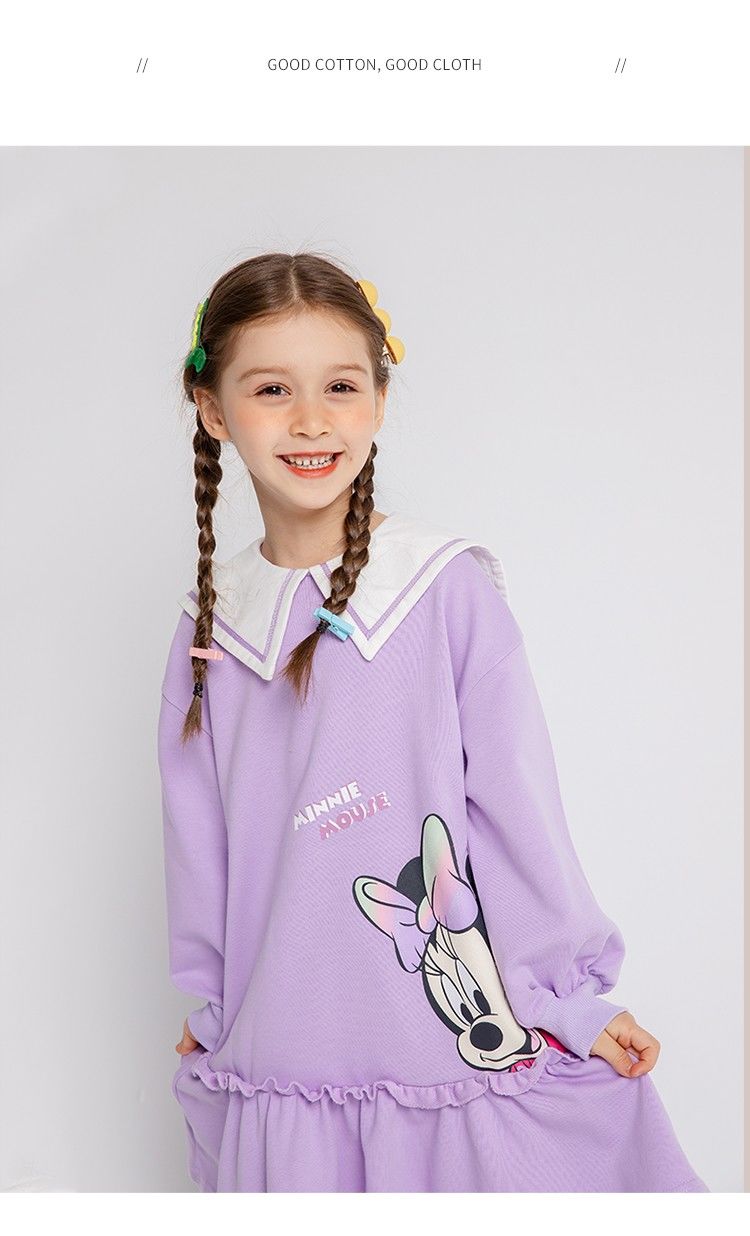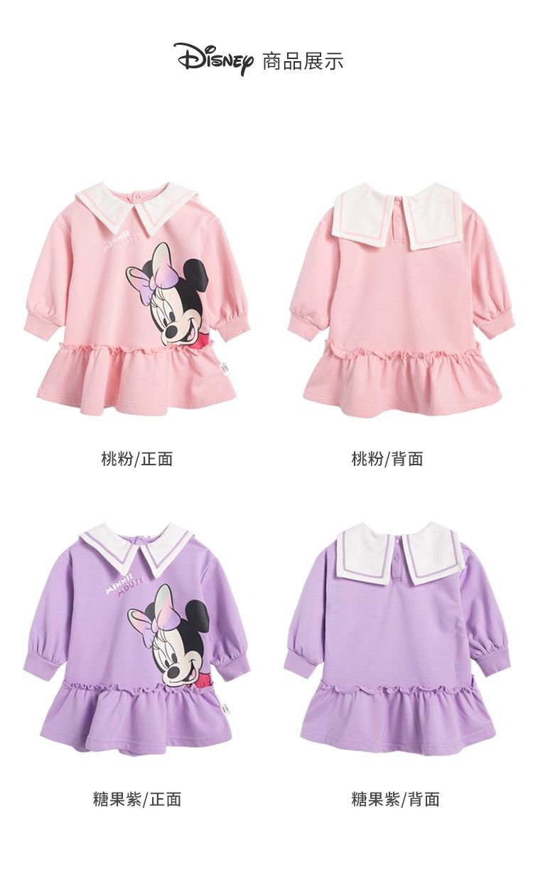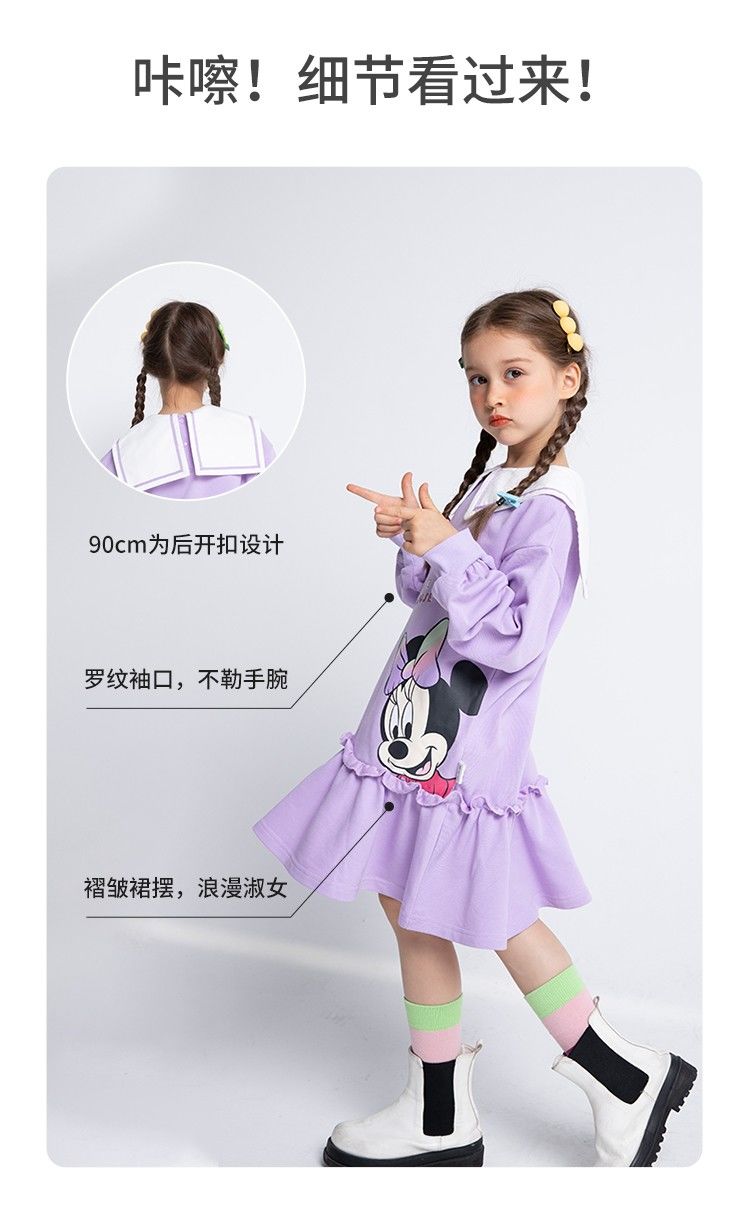 迪士尼童装儿童连衣裙春秋新品女童海军风领子卫衣裙中长裙221Q770