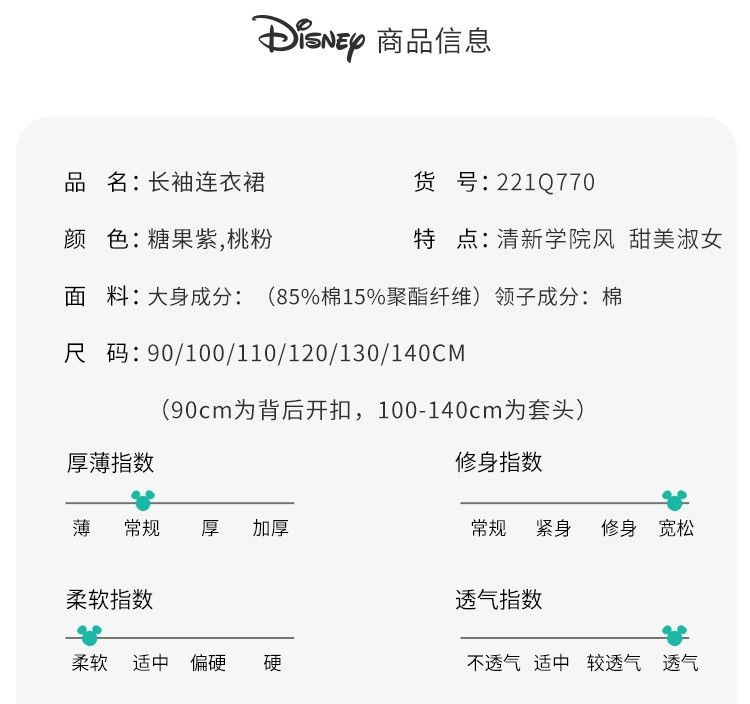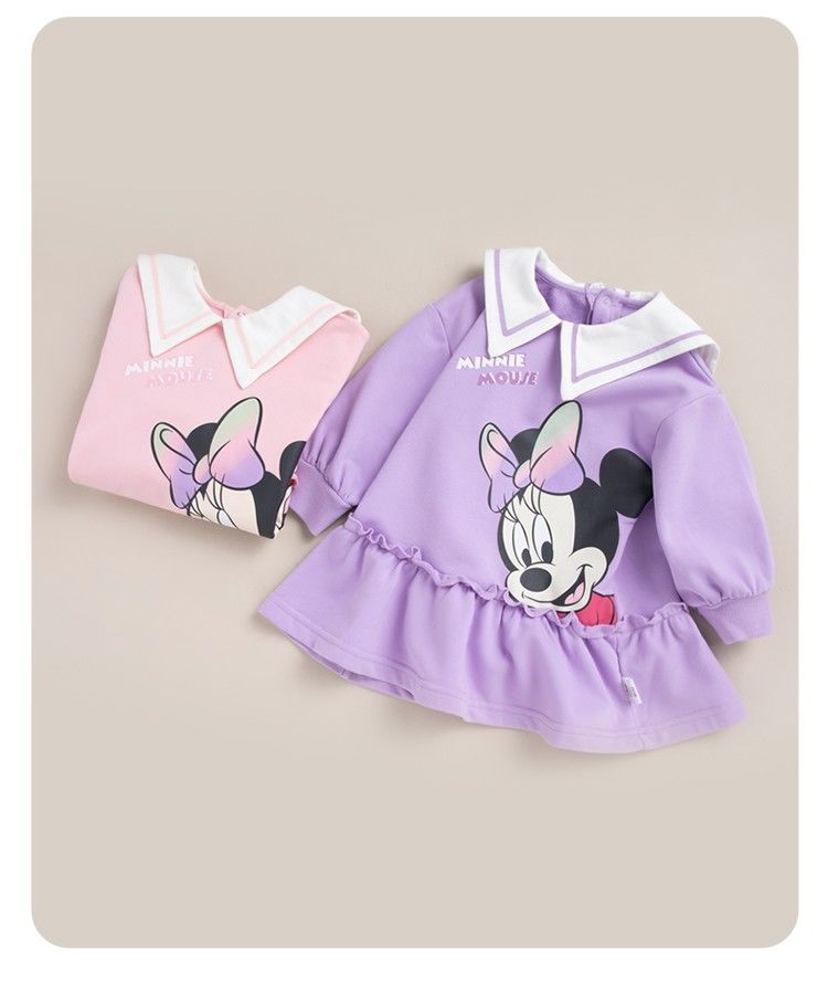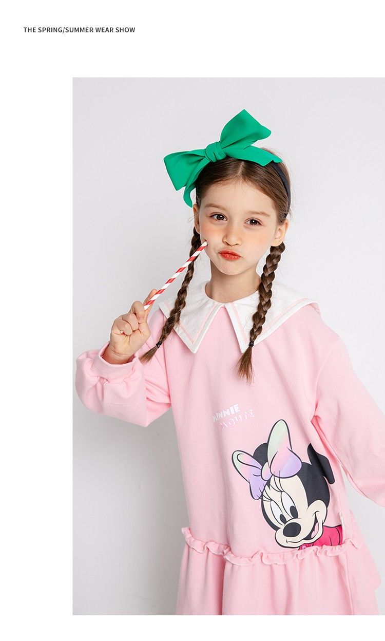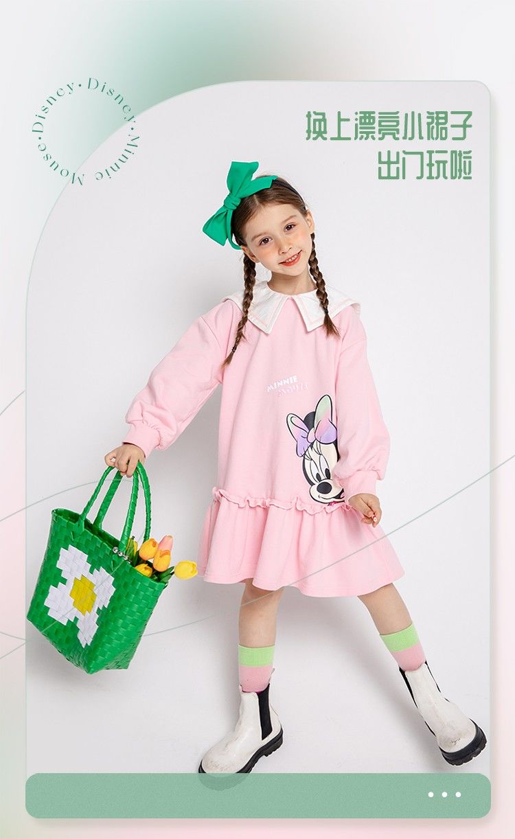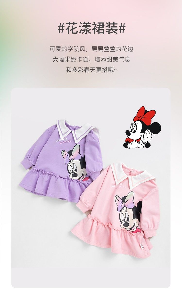 迪士尼童装儿童连衣裙春秋新品女童海军风领子卫衣裙中长裙221Q770