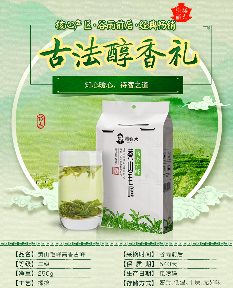 【2025新茶上市】谢裕大 黄山毛峰 早春翠峰 250g 雨前自饮