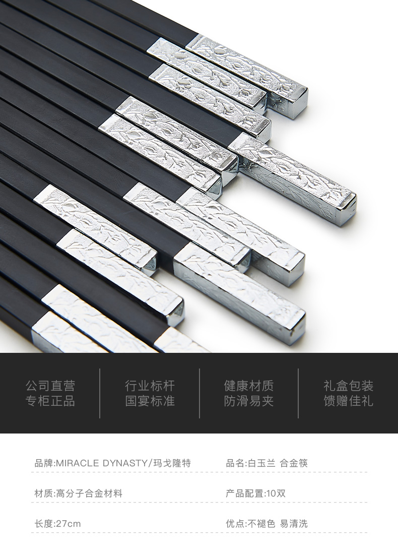 【6F】玛戈隆特 合金筷子套装家用筷 家用防滑耐摔耐高温易清洗 礼盒礼品包装 白玉兰10双