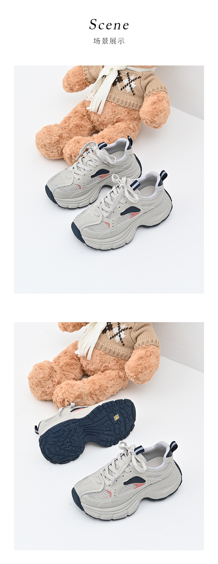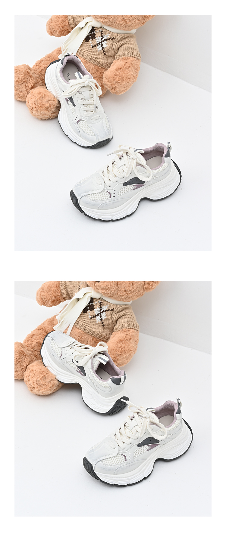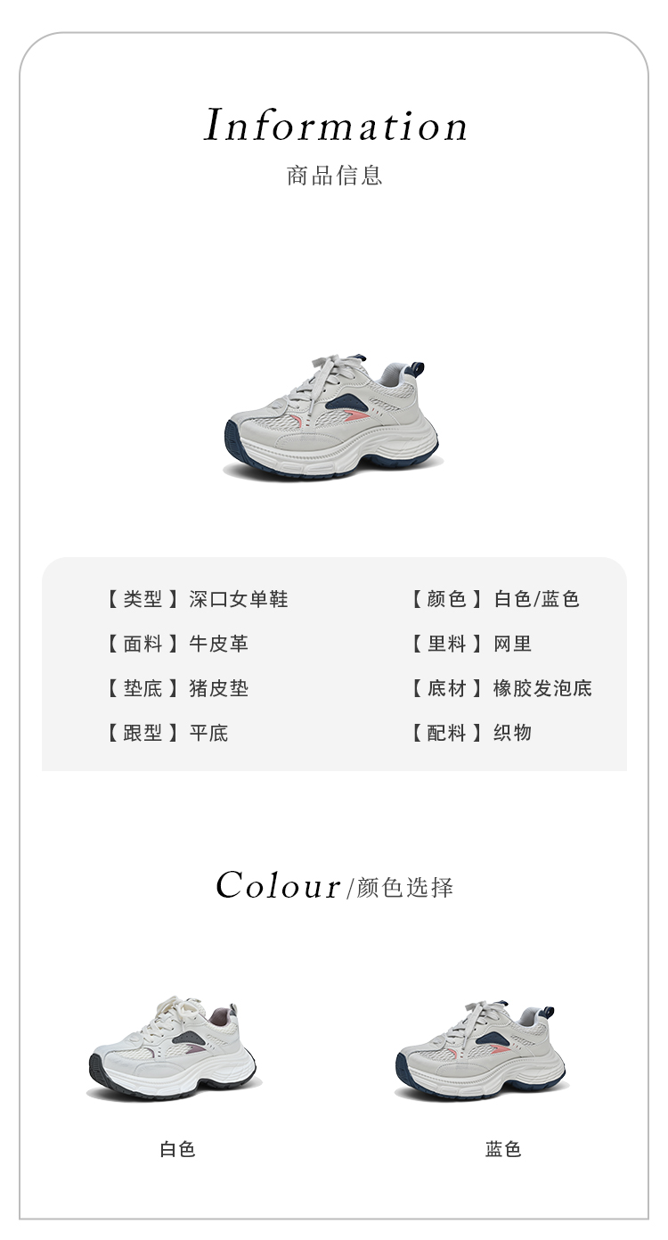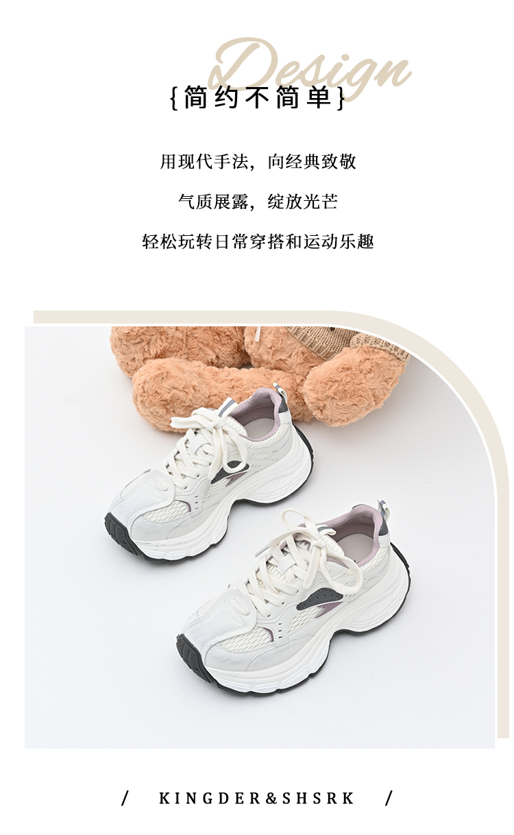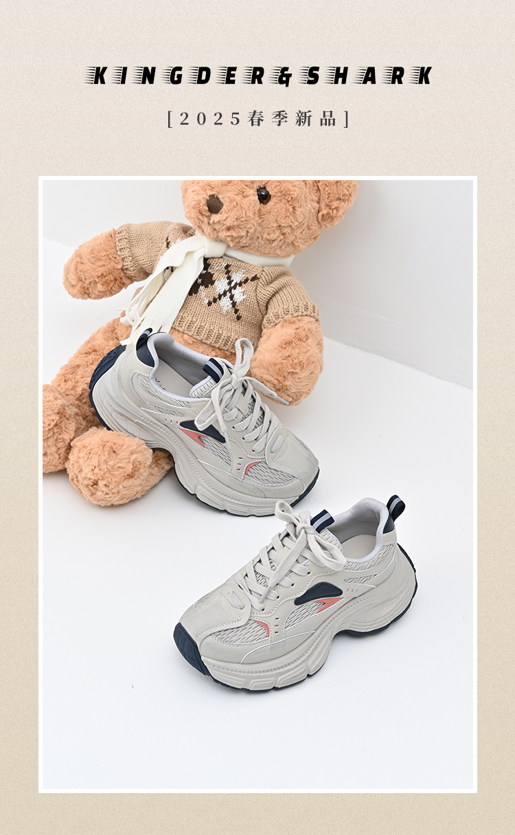 经典鲨女鞋2025年春季新款网状透气舒适显高跑步休闲鞋老爹鞋KW179-517021