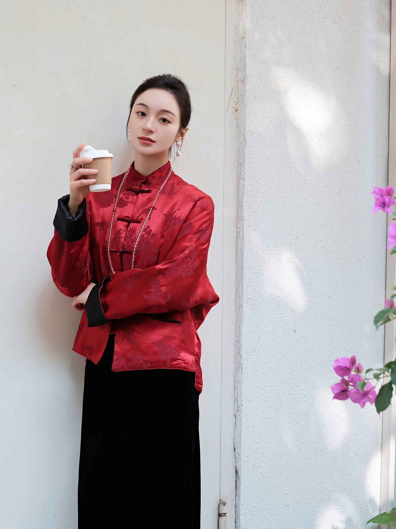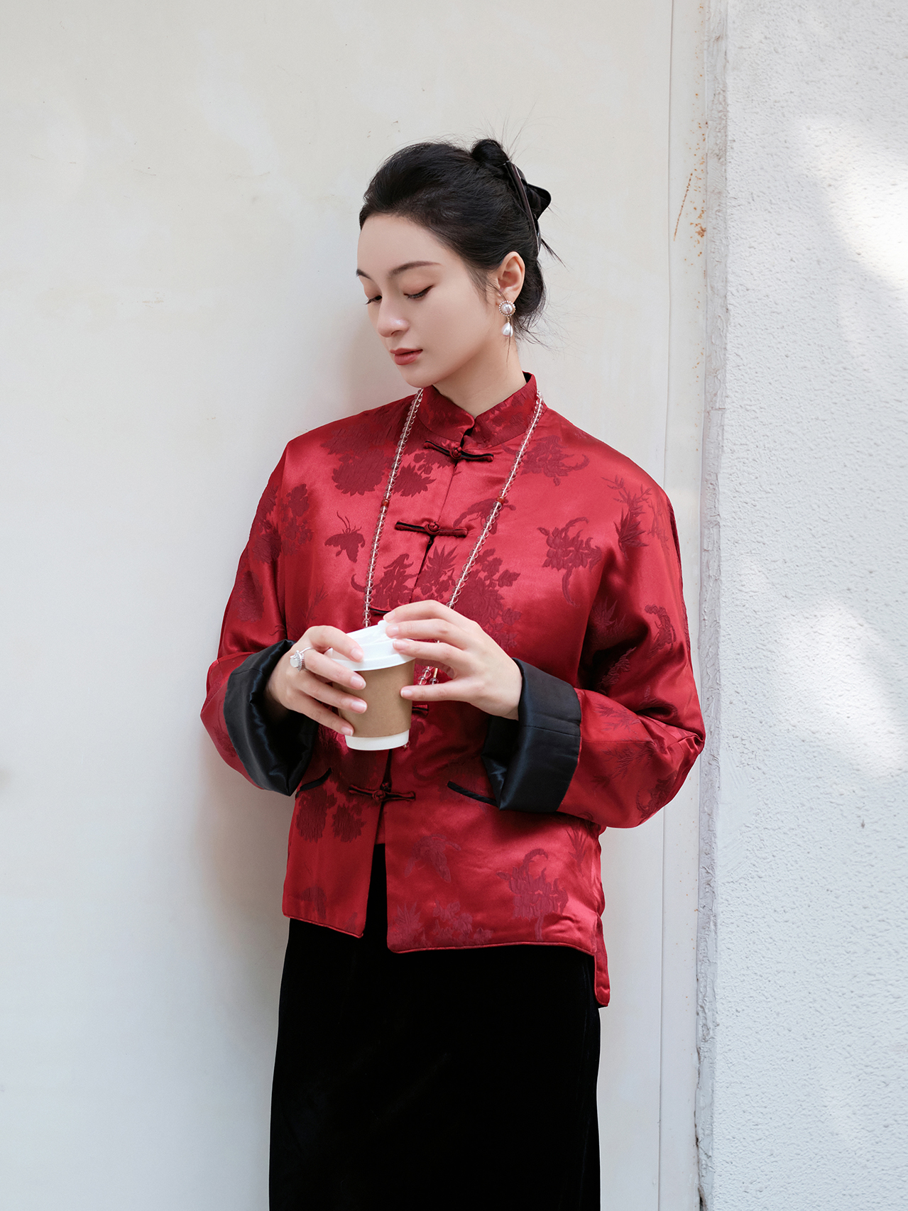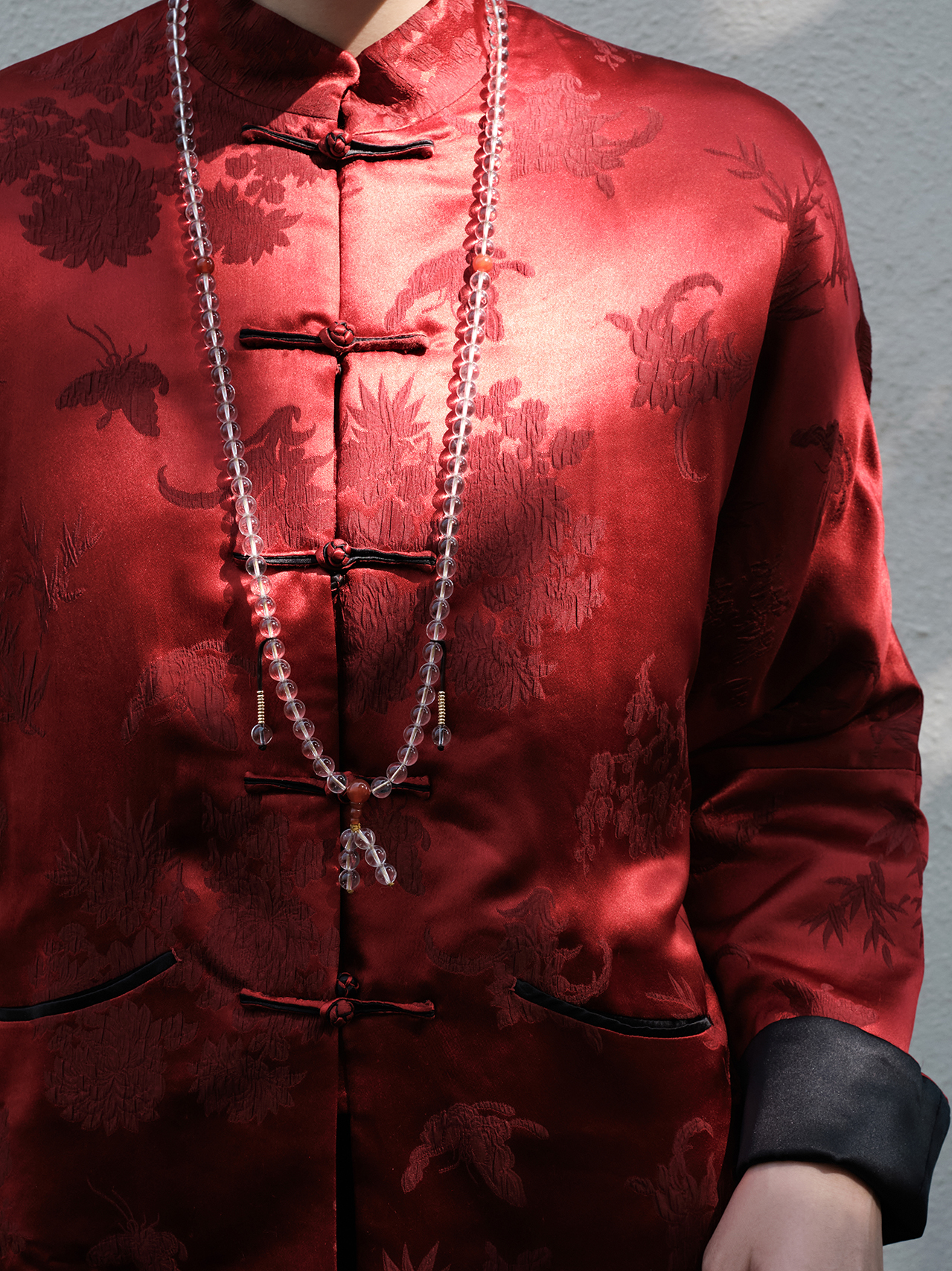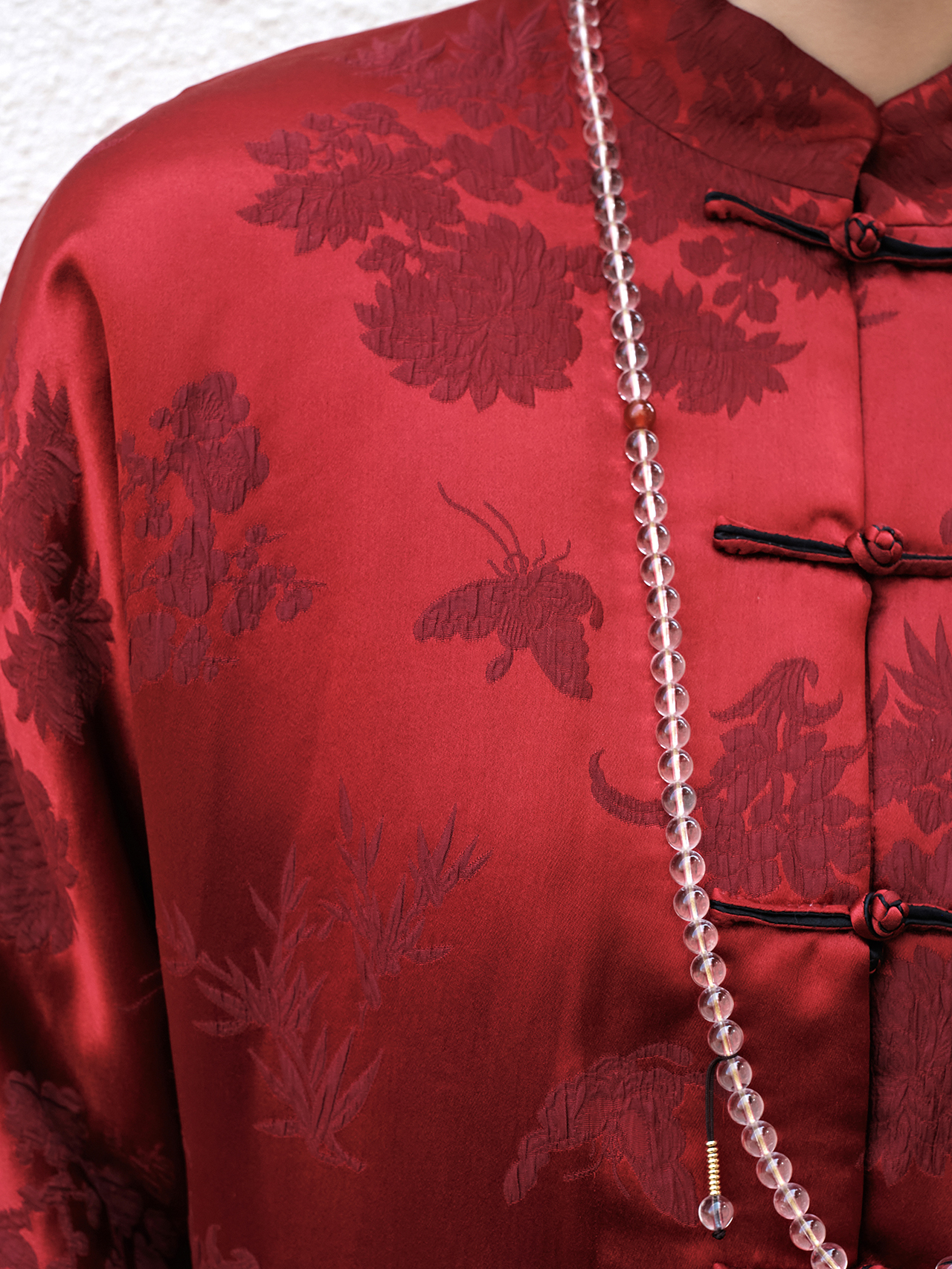 盛唐牡丹 |勃艮第红冠乐绉斜襟上衣