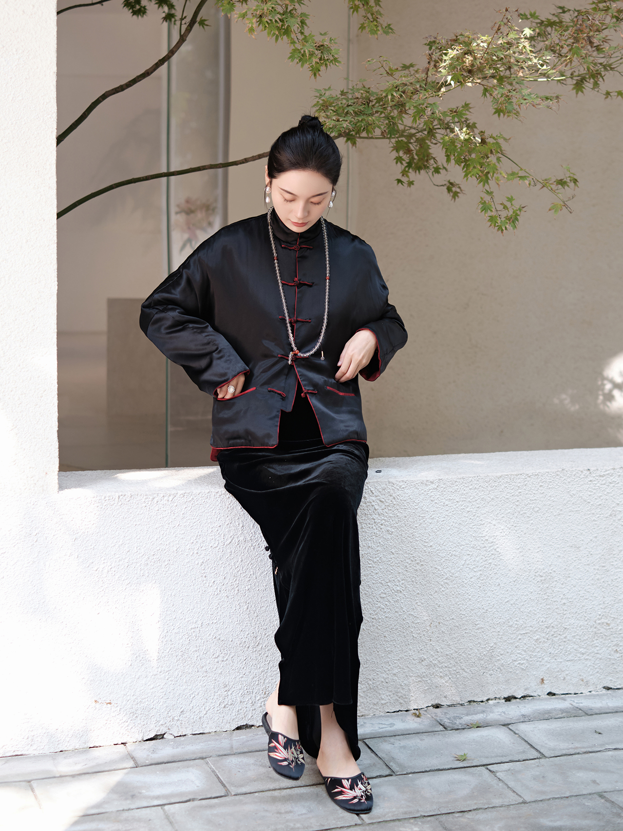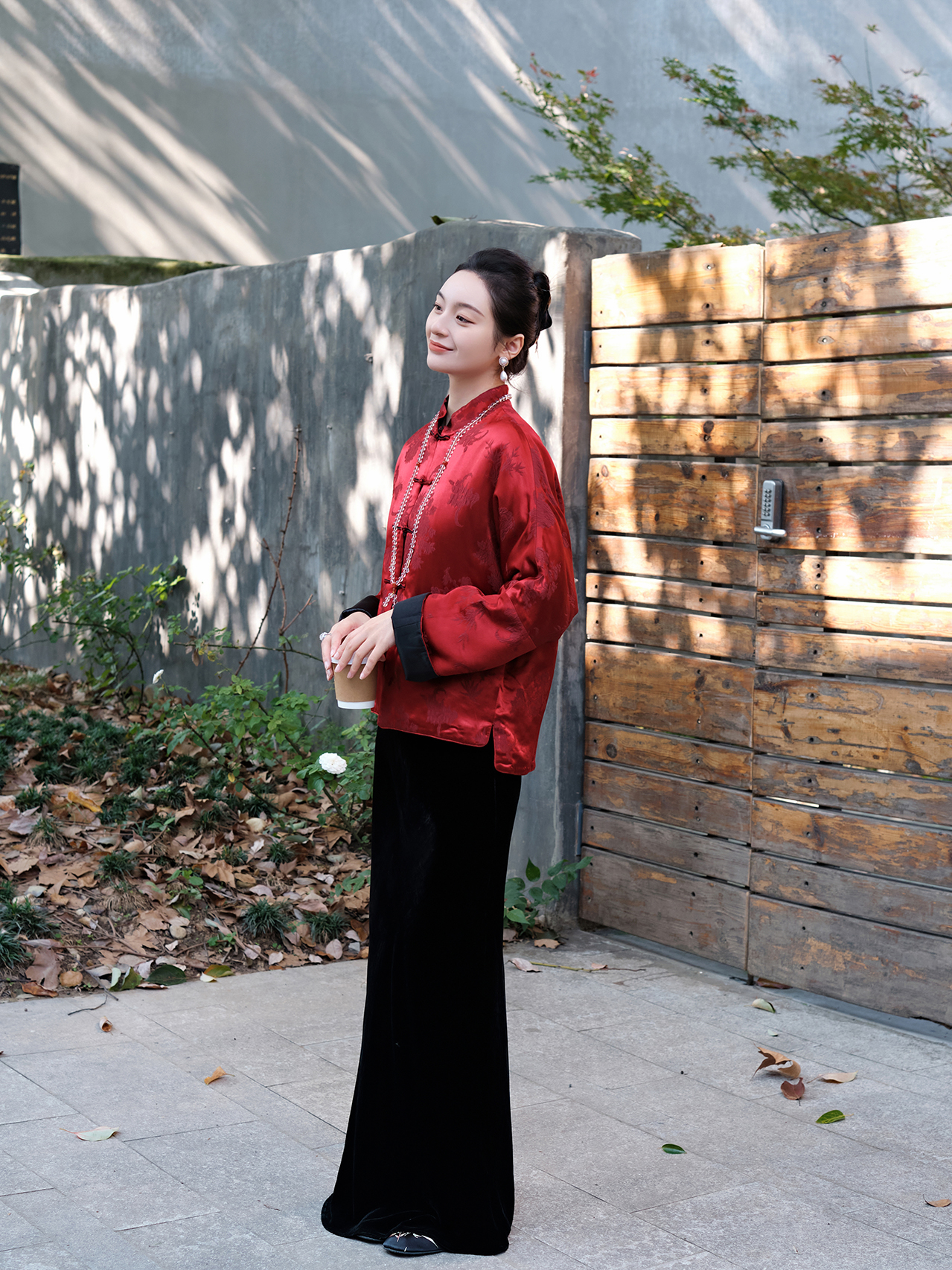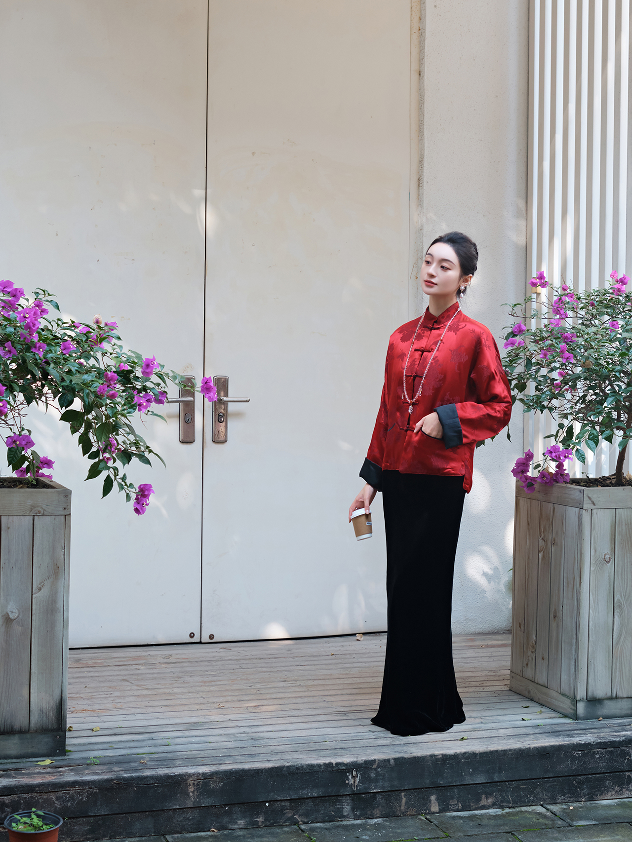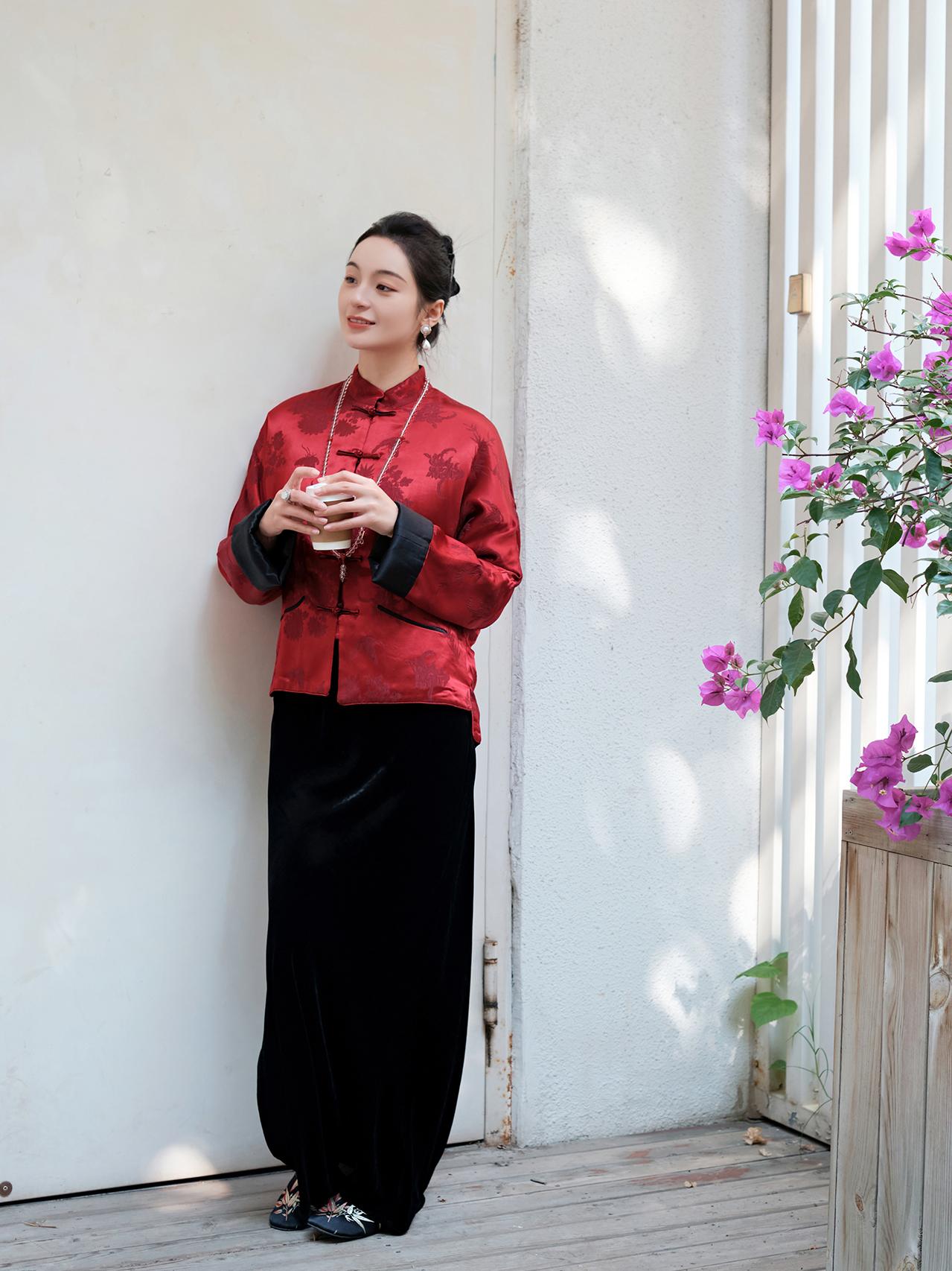 盛唐牡丹 |勃艮第红冠乐绉斜襟上衣