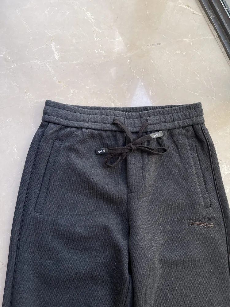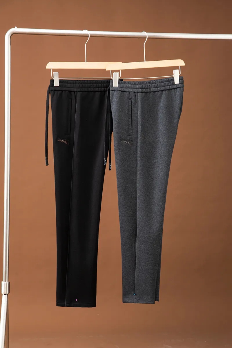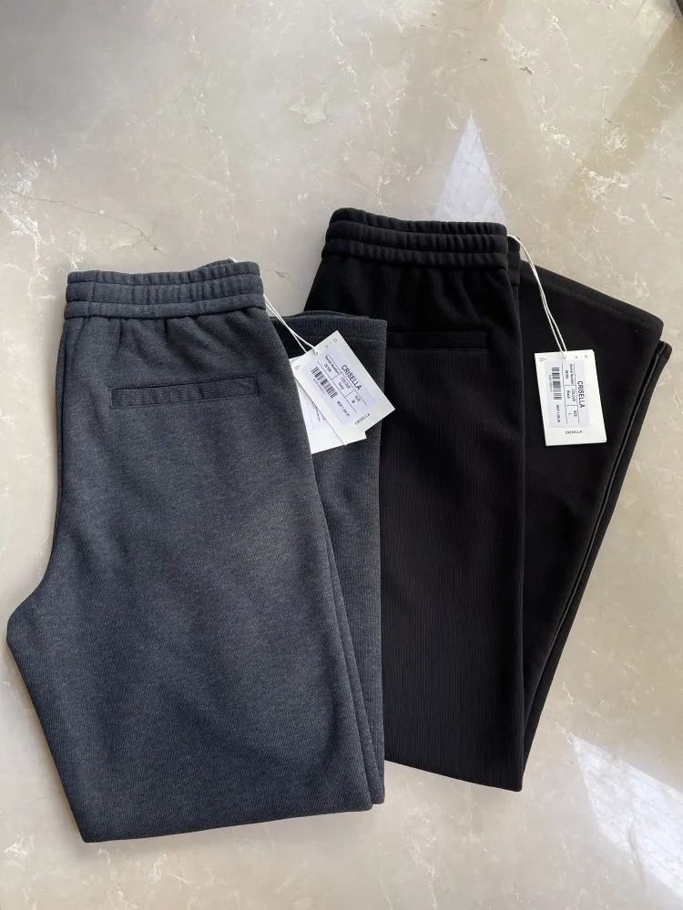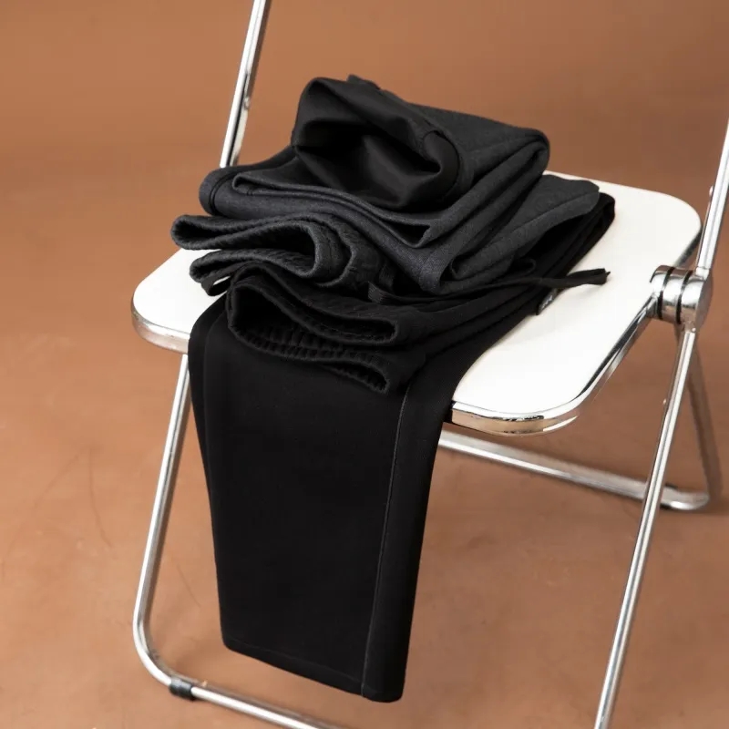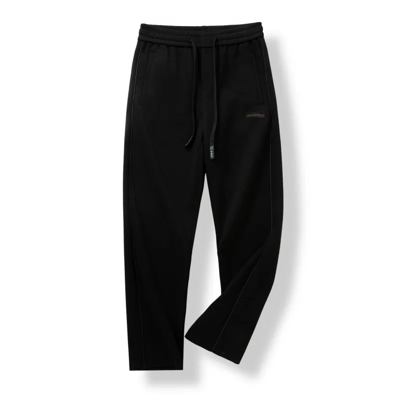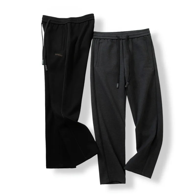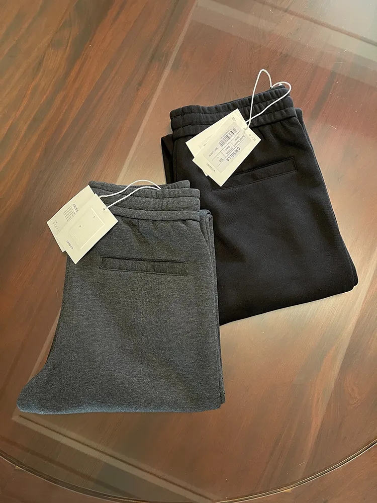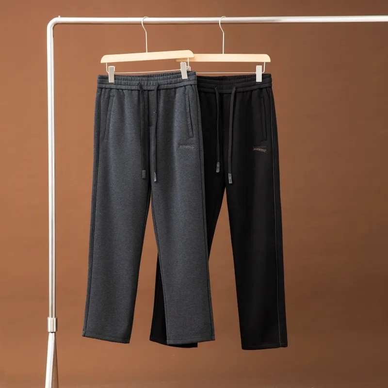 澳门订单定织双层加厚复合面料!秋冬男士松紧腰舒适百搭宽松直筒微弹针织休闲裤纯色长裤