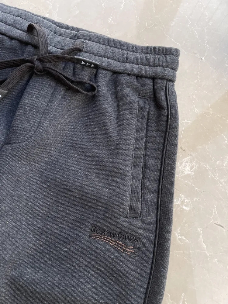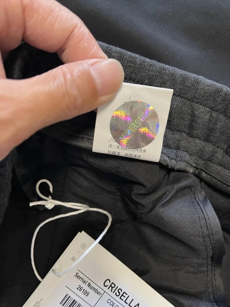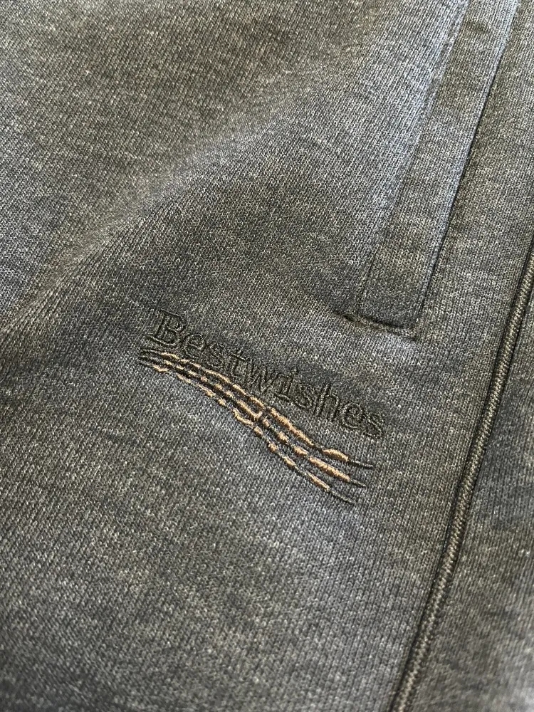 裤管前字母绣花装饰,