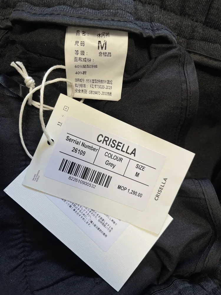 L腰围77-87 臀围105 裤长105 裤口21 (110-130斤)