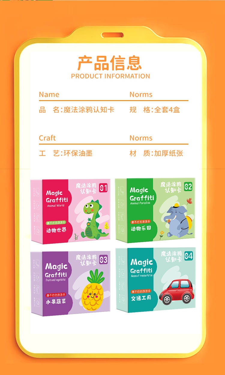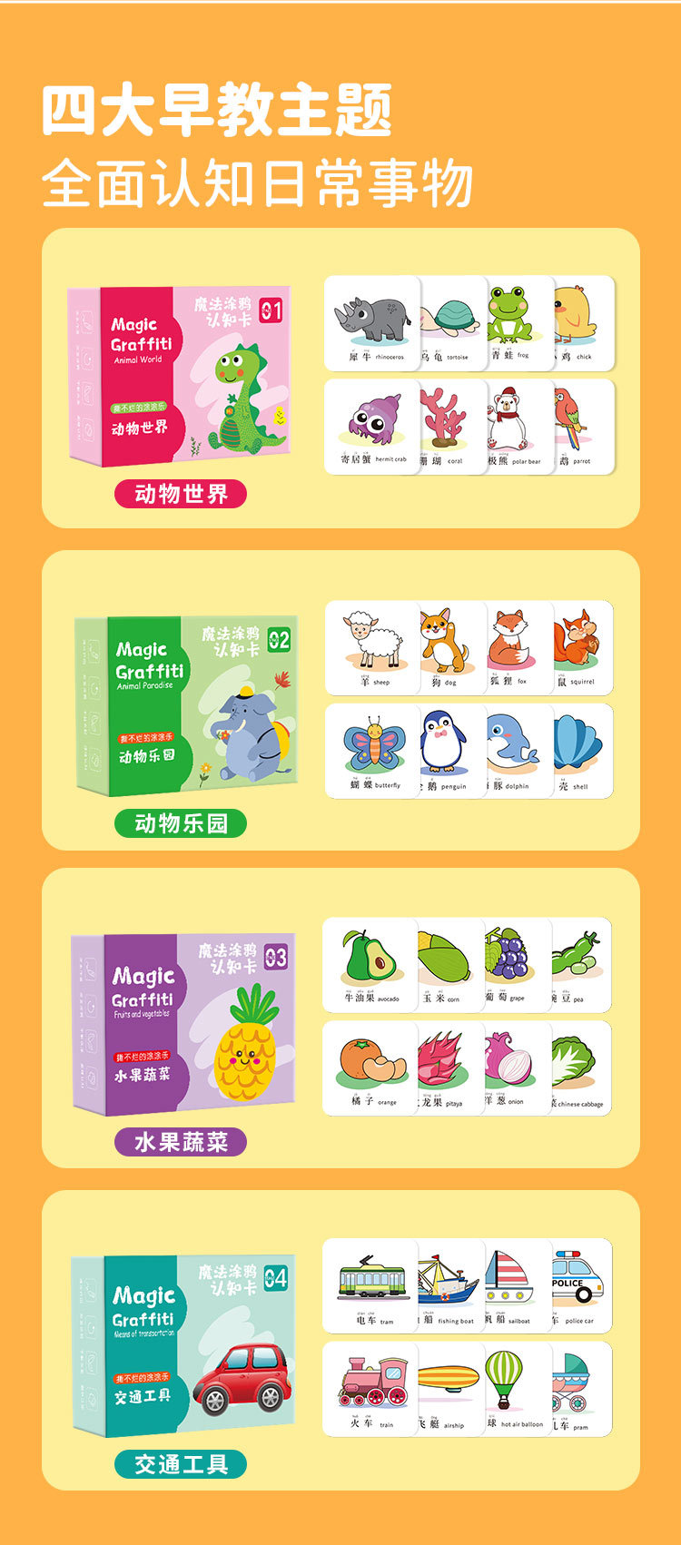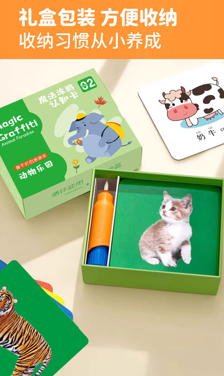 【送注水画笔❗魔法涂鸦认知卡】认知更清晰,正面认知,反面清水涂鸦,反复使用,早教闪卡儿童益智玩具魔法水写笔黑白卡彩色QQ