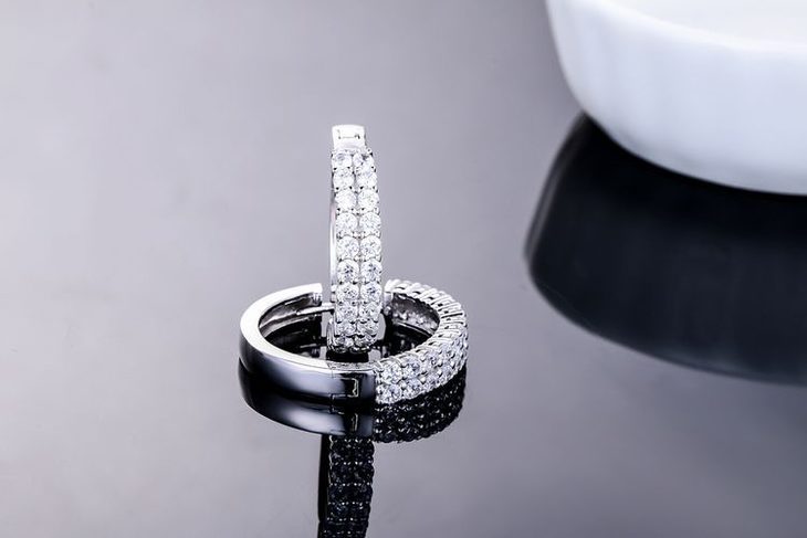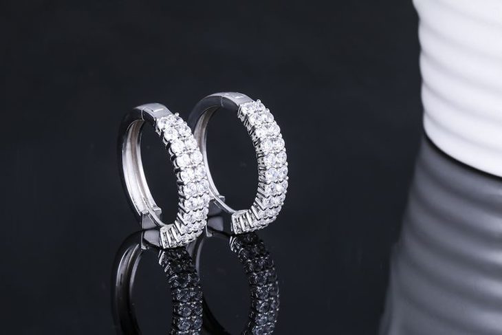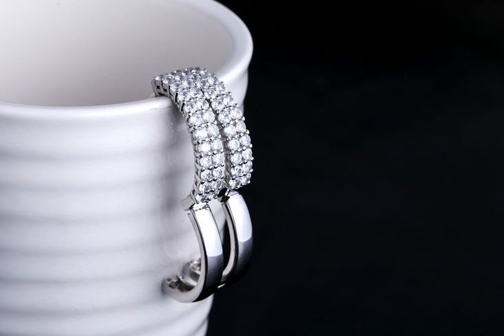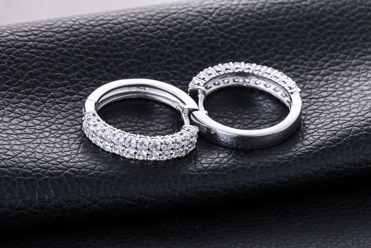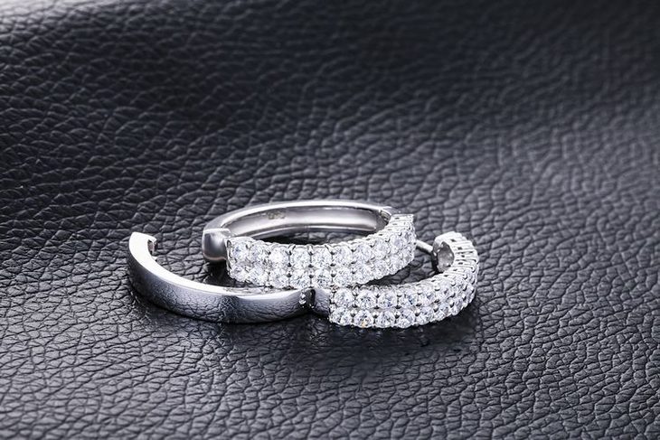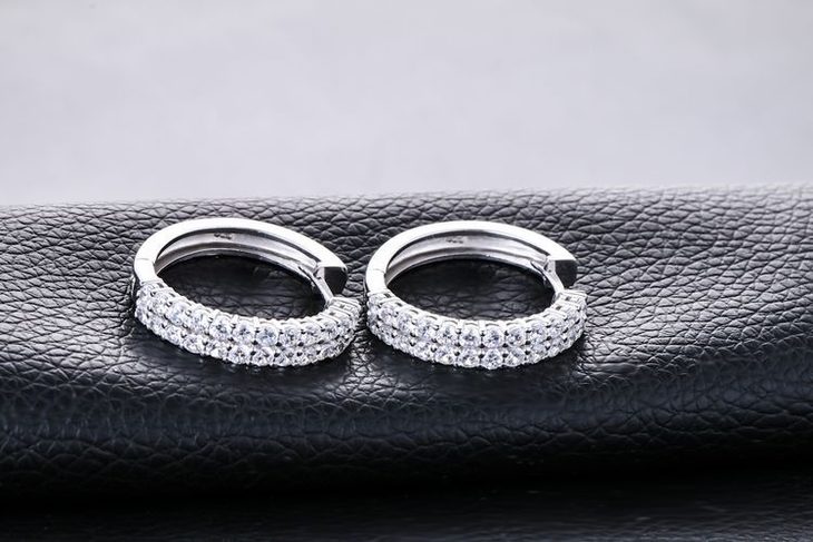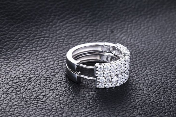 【耳环】新款925纯银耳钉 韩版时尚双排镶钻圆圈耳环耳圈