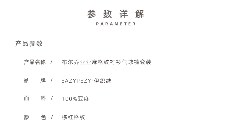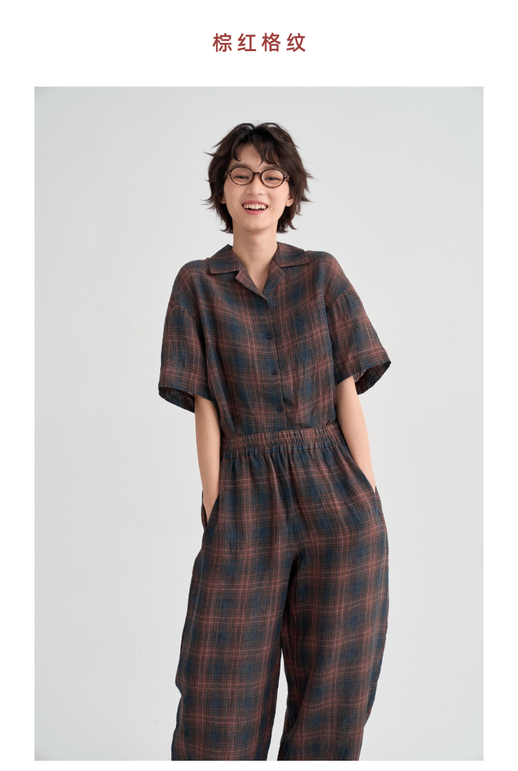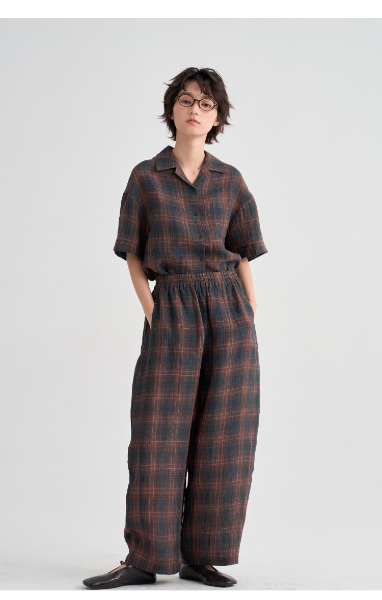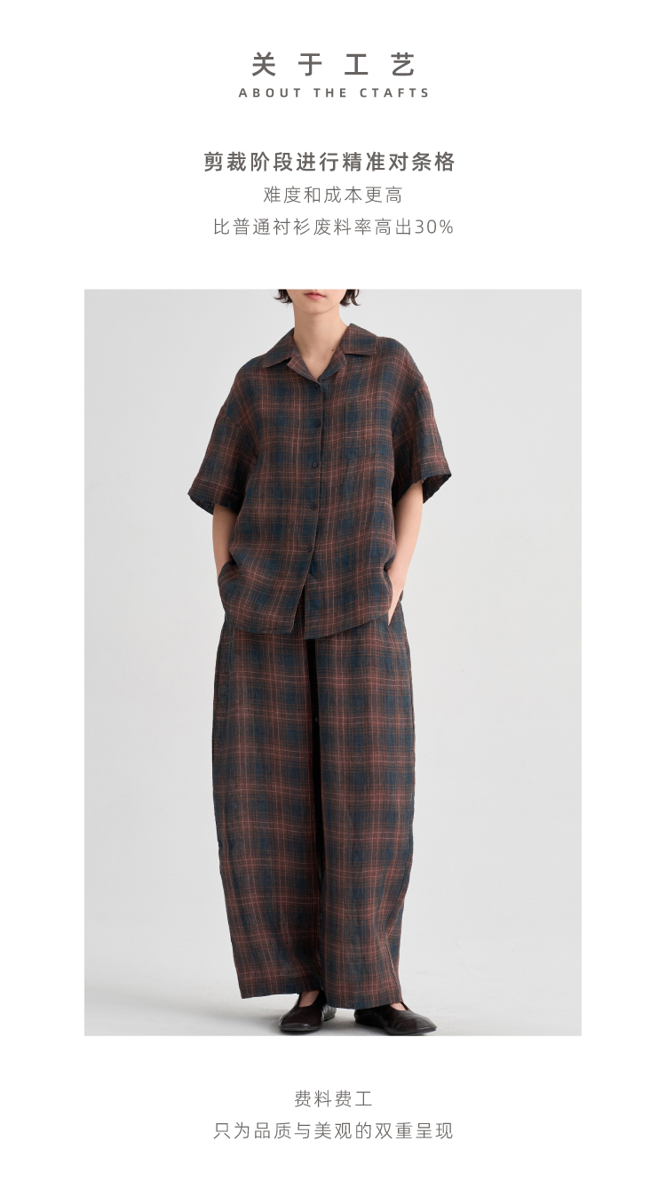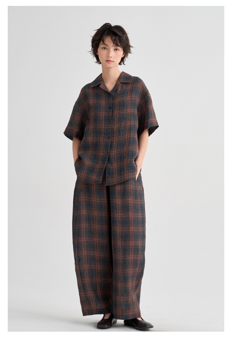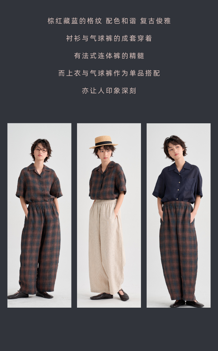 布尔乔亚亚麻格纹衬衫气球裤套装