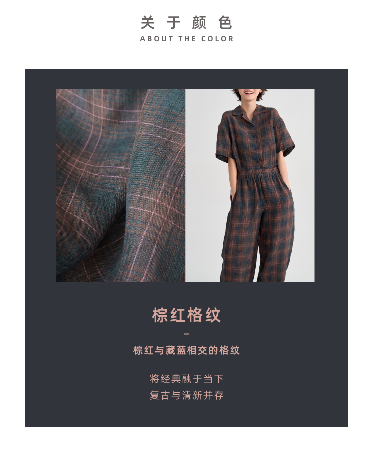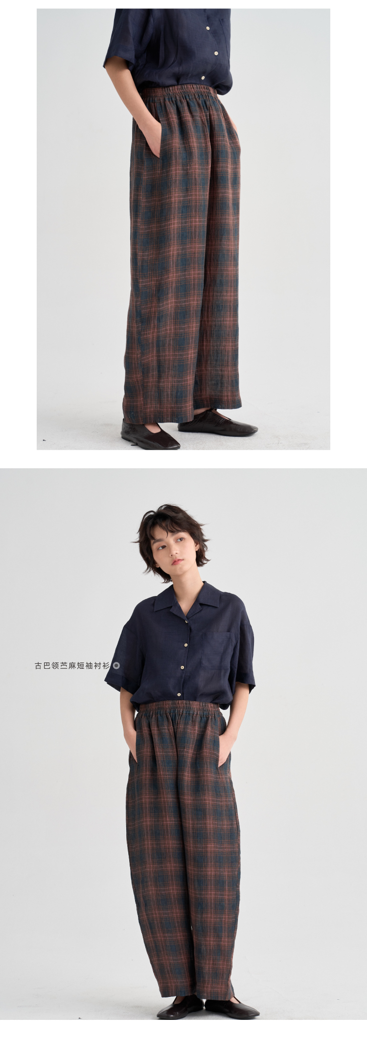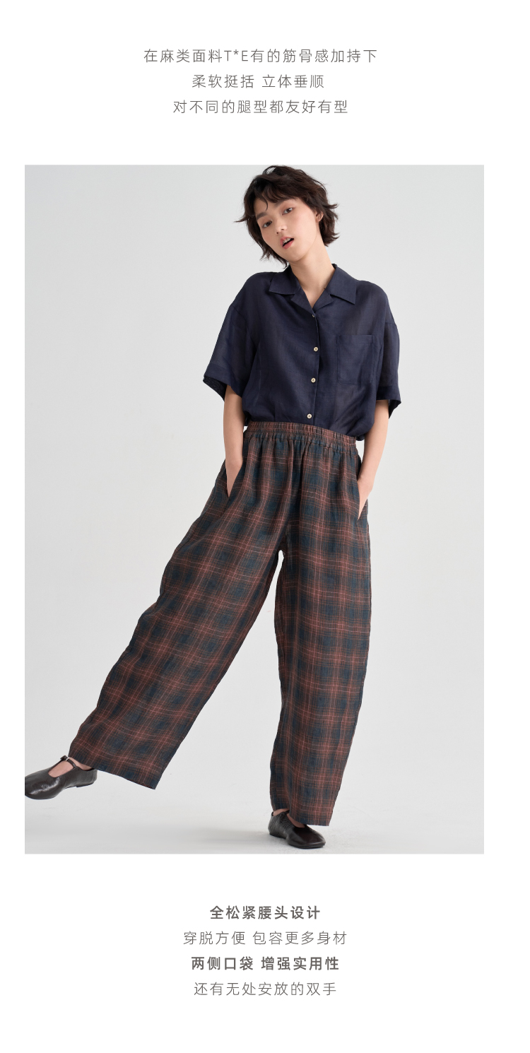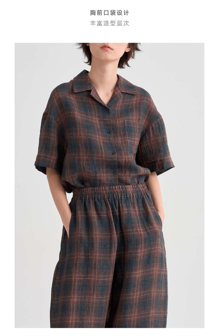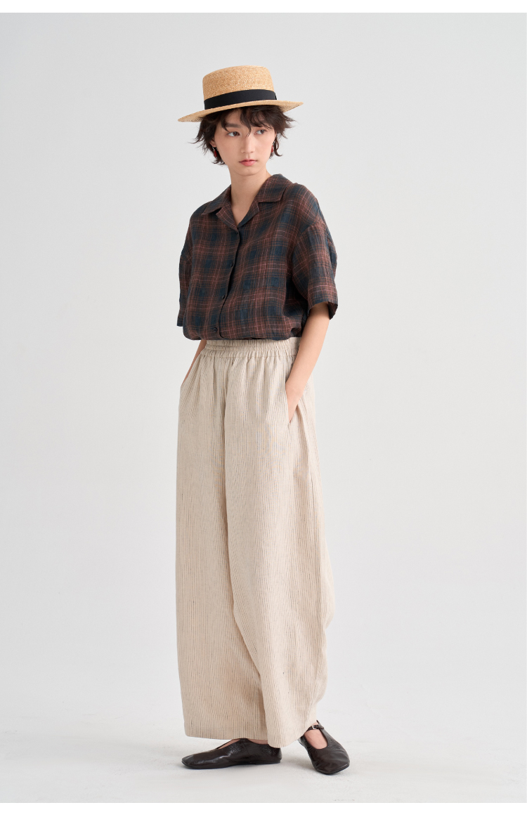 布尔乔亚亚麻格纹衬衫气球裤套装